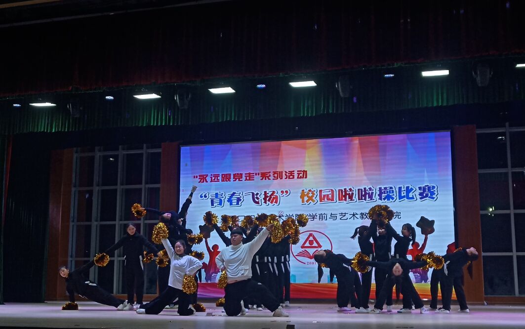 12月19日晚,公司“永远跟党走”系列活动第一届校园啦啦操大赛成功举行,本次活动以“青春飞扬”为主题,全院20个班400余名选手参加了本次比赛。