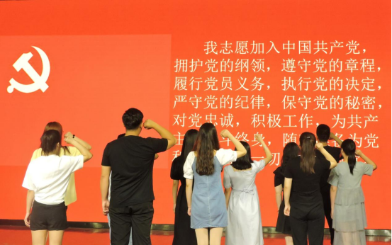 崔彤彤老师带领10名新党员进行庄严宣誓