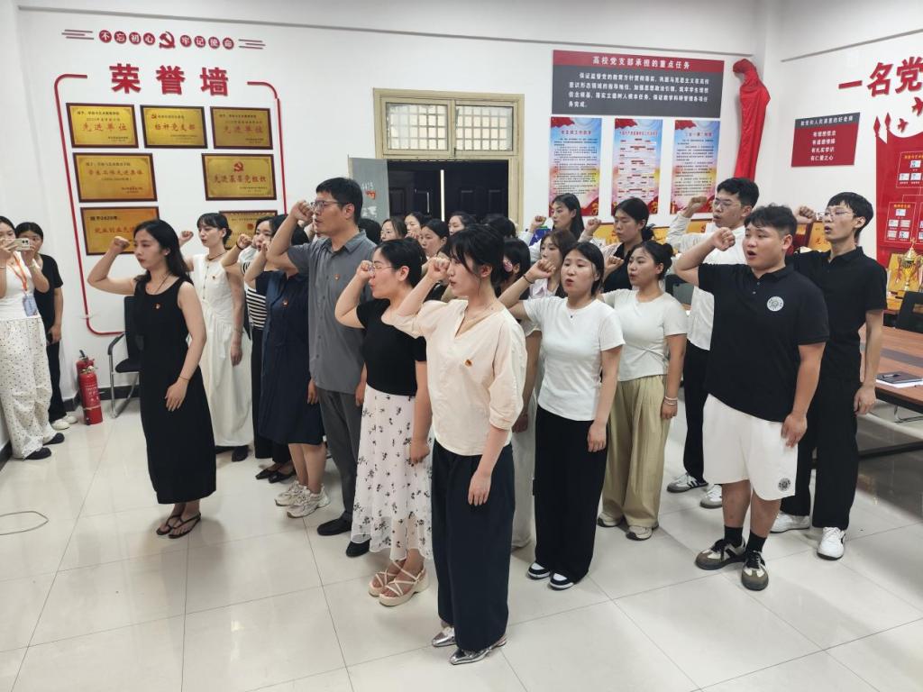 会议最后,青年委员周姣姣同志作为领誓人,带领全体党员一起紧握右拳,庄严肃立,重温了入党誓词,表达了支部党员永葆初心使命,为共产主义奋斗终身的坚定信念和决心。