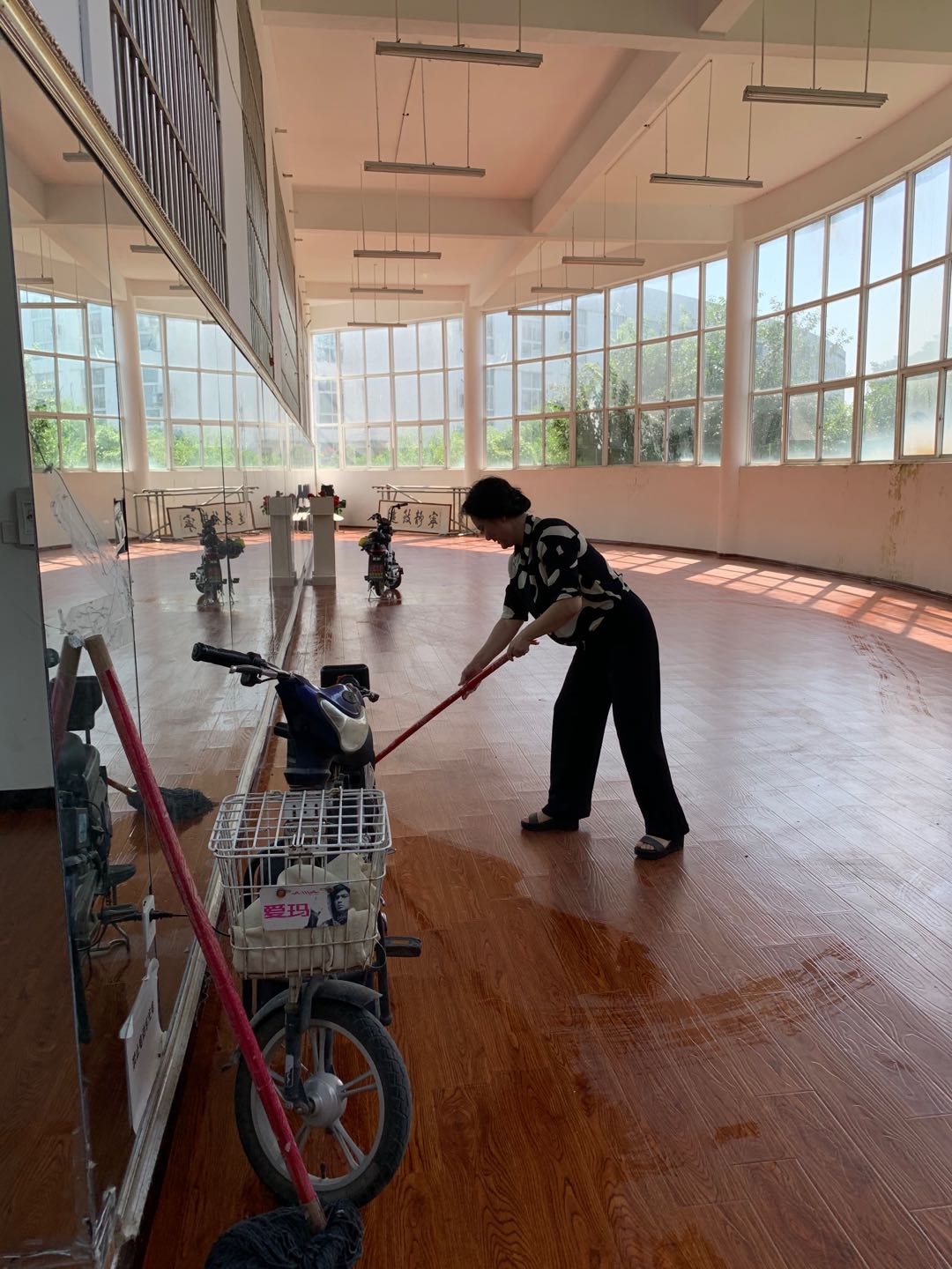 (图为打扫过后的舞蹈教室)