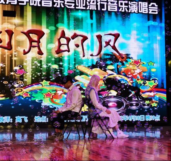 yl7703永利音乐专业流行音乐演唱会完美收官,4月18日晚,yl7703永利“四月的风”演唱会”在演播厅如约开唱。公司副经理王春生,公司教师王国检、石孟晓、彭莹出席了活动。