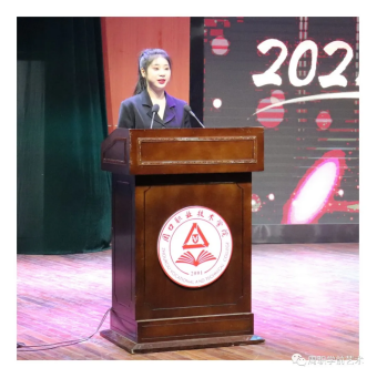 紧接着,21级音乐表演专业王诗琦同学代表全体807名新生在典礼上发言,她说到: