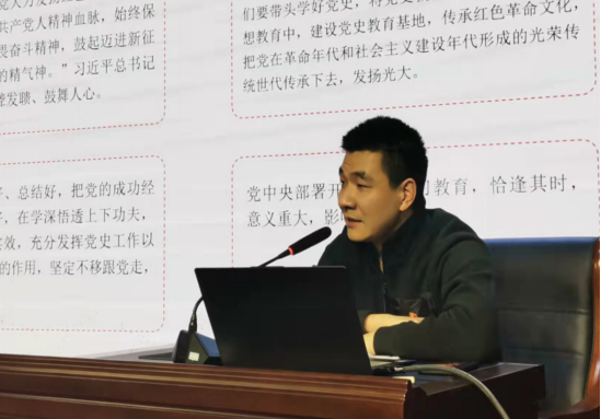 12月3日下午,yl7703永利员工党支部在一楼演播厅开展党史学习教育专题党课。支部委员崔彤彤主讲,公司全体入党积极分子参加了本次培训。