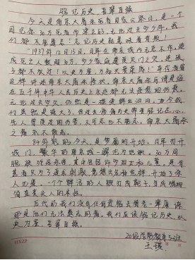 21级学前1班的段慧慧讲到:“南京大屠杀是惨绝人寰的,作为新时代的老员工,我们应该铭记这段屈辱的历史,缅怀先烈,警钟长鸣,砥砺奋斗,为中华民族伟大复兴贡献出自己的力量!”