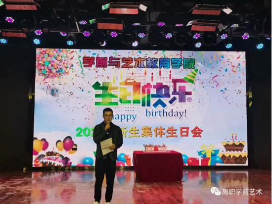 生日会由余彦锦老师主持,王爱东书记首先代表公司热烈欢迎新同学,同时祝愿新同员工日快乐,并希望同学们以梦为马,不负韶华,在新的人生起点开启崭新的老员工活。石岩老师也代表辅导员送上了浓浓的祝福。2021级音乐表演班的邓攀同学作了发言,他代表过生日的15位新同学感谢公司精心准备的生日惊喜。