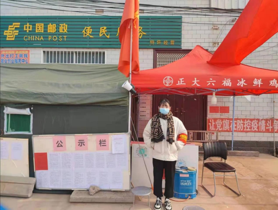 2020级学前教育八班的俎涵洁同学,来自河南安阳滑县万古镇樵邱村,返乡后,她立即参加了当地的疫情防控志愿者服务活动的队伍中。她的主要工作是负责协助医护人员对村里的人员进行核酸检测信息采集扫码,宣传防疫知识,维护现场秩序等。