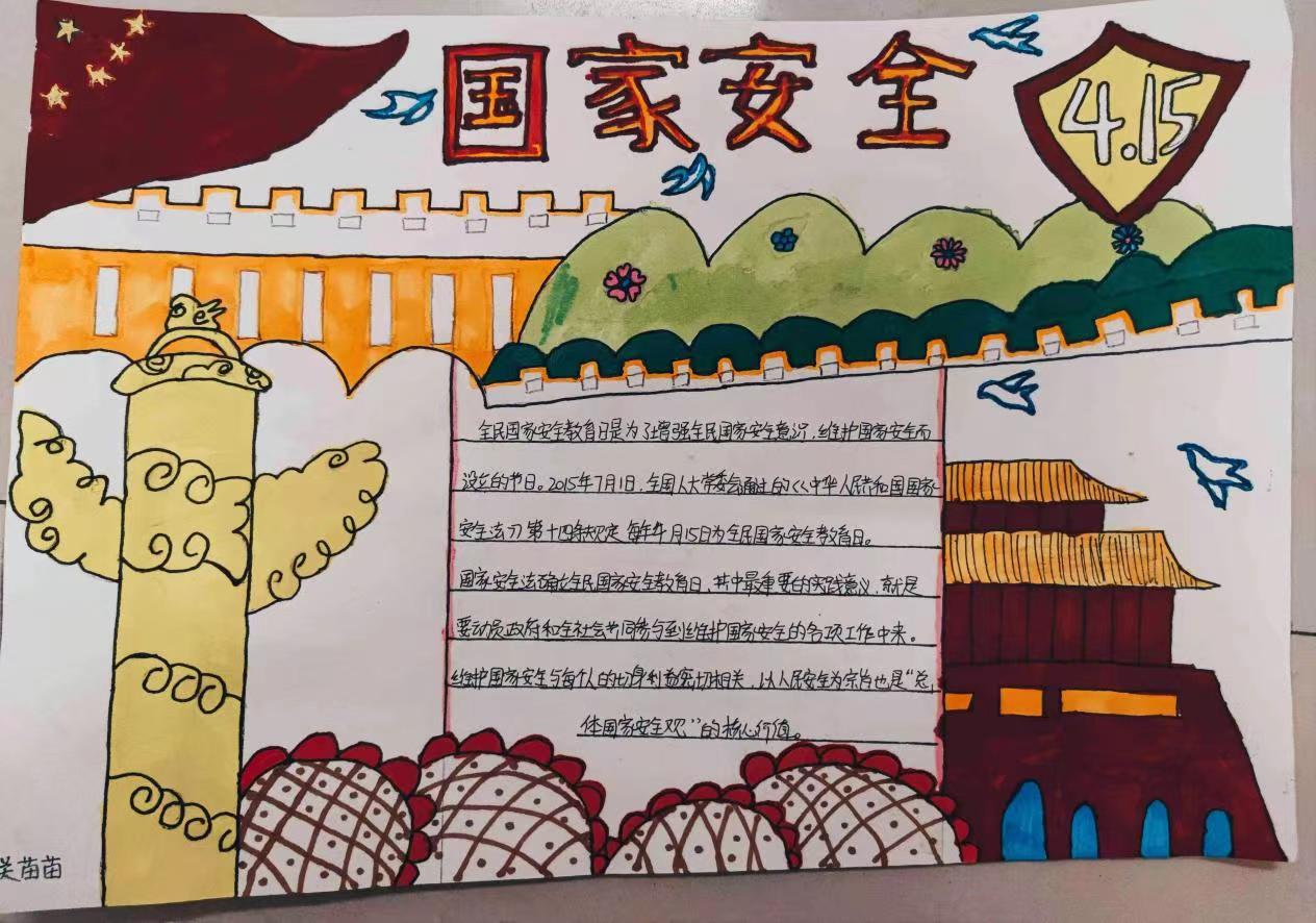活动中,同学们积极参与。借助手中的画笔绘制了一幅幅主题鲜明、思想积极、内容丰富、设计新颖的手抄报作品,普及国家安全知识,宣传国家安全理念。