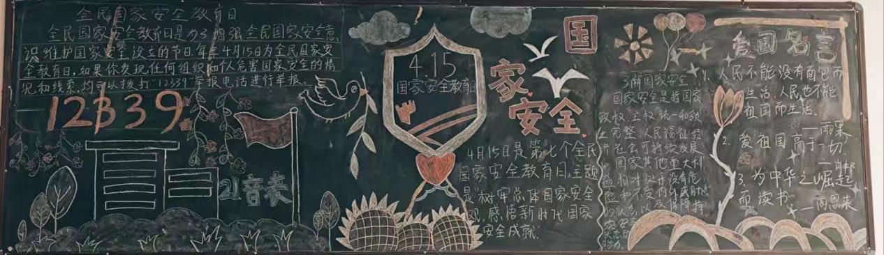 在绘制过程中,同学们查询相关国家安全文献,深入了解学习国家安全知识,利用美术字、图画等艺术形式对黑板报进行用心构思和精心设计,体现了国家安全鲜明主题,图文并茂,全方位、多角度的宣传了国家安全的重要性。