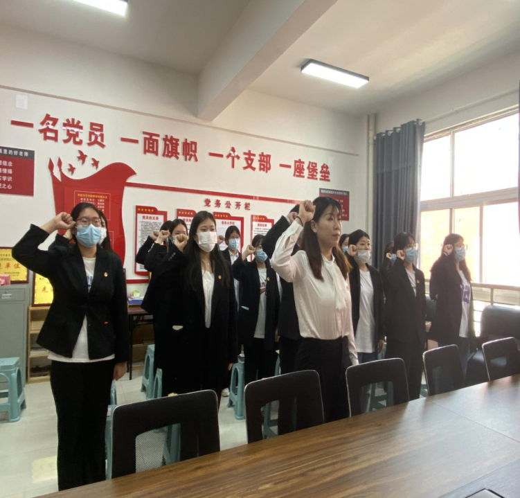 团总支书记刘馨馨带领新接收的预备党员宣誓,全体预备党员齐声跟读誓词,庄严地向党许下自己的誓言。