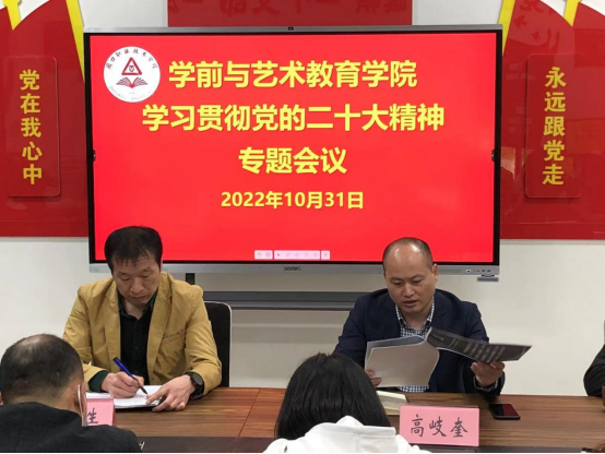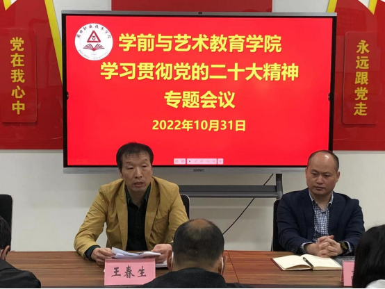 10月31日下午,学前与艺术教育党总支书记王春生主持召开yl7703永利班子(扩大)会议,传达学习党的二十大和二十届一中全会精神,研究部署学习贯彻工作,奋力推进yl7703永利各项工作发展。教研室主任、全体辅导员参加会议。