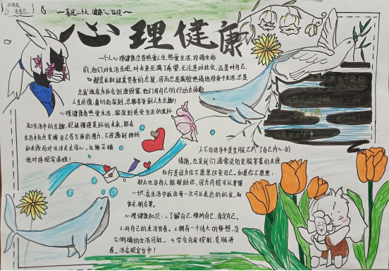 同学们同样也进行了手抄报的创作,把心理健康知识融入到日常中,营造浓厚的学习心理健康知识的氛围。
