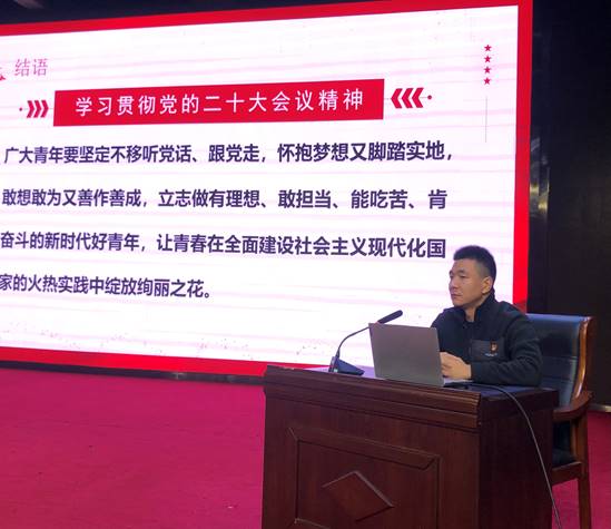 员工党支部书记崔彤彤以“学习贯彻党的二十大会议精神”为题,全面阐述了党的二十大会议精神的主要内容和丰富内涵。详细分析了建党百年来的历史任务和所取得的成就,以及百年来党的重大转折点。同时他讲道,党的二十大是历史性的转折点,各党员及入党积极分子要深入学习党的二十大会议精神,了解党的二十大会议精神的丰富内涵和核心要义,并做好宣传,牢记党的初心使命,切实把党的二十大会议精神落实到日常工作中。