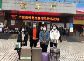 公司为返乡员工提供送站服务,组织大巴车进校,教师党员亲自跟车进行“点对点”送站,分别送员工到高铁站、汽车站。到站后,老师们帮助员工搬运行李,叮嘱员工途中做好个人防护,引导其安全有序乘车。在老师们的帮助下,离校员工全都坐上了返乡的列车。