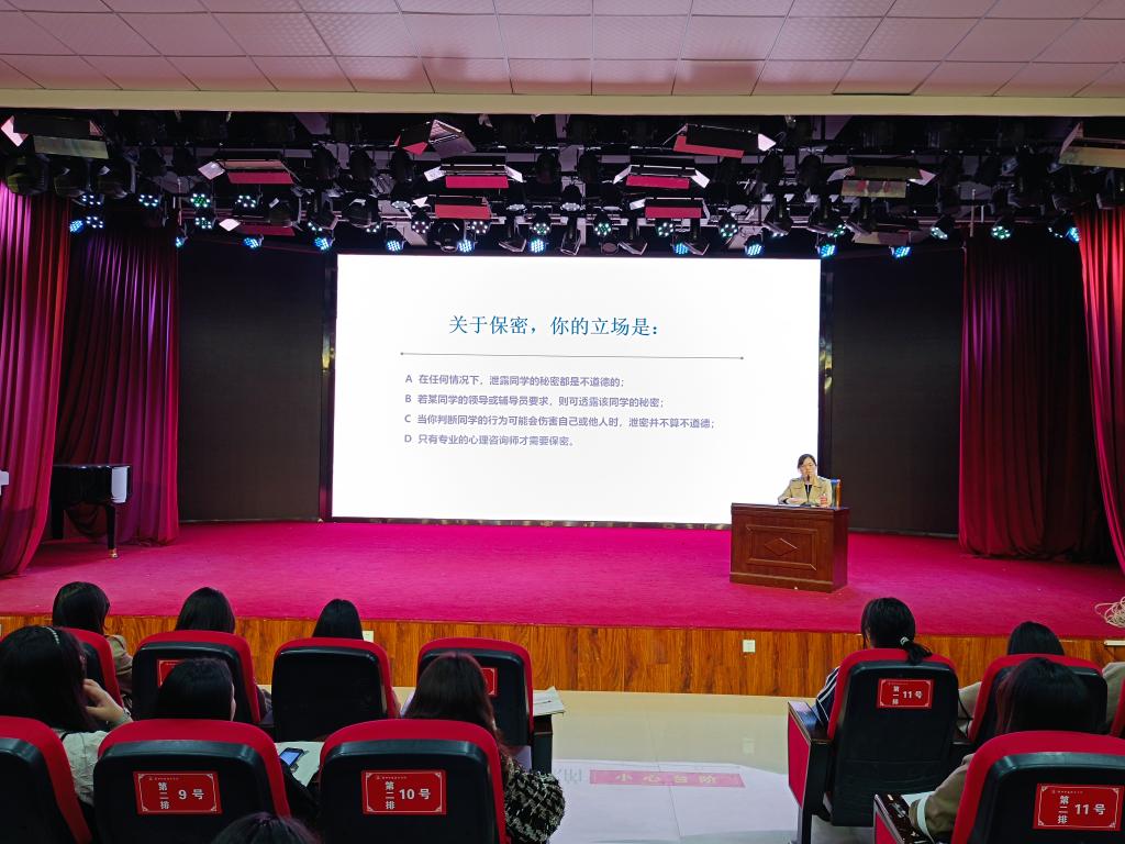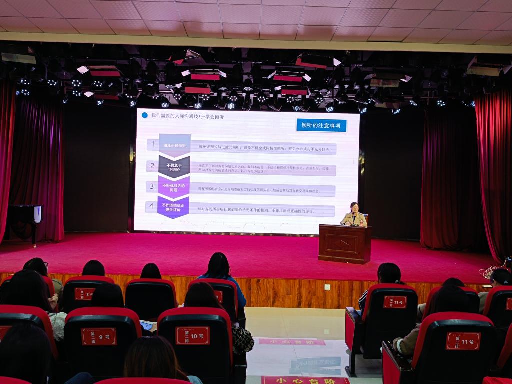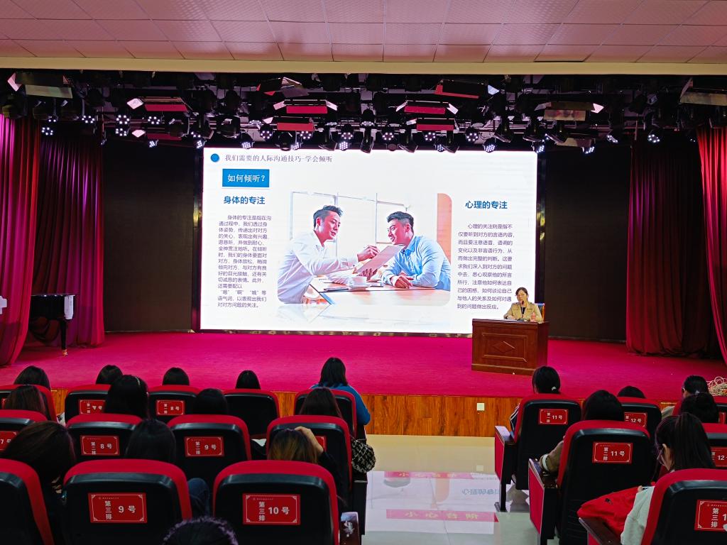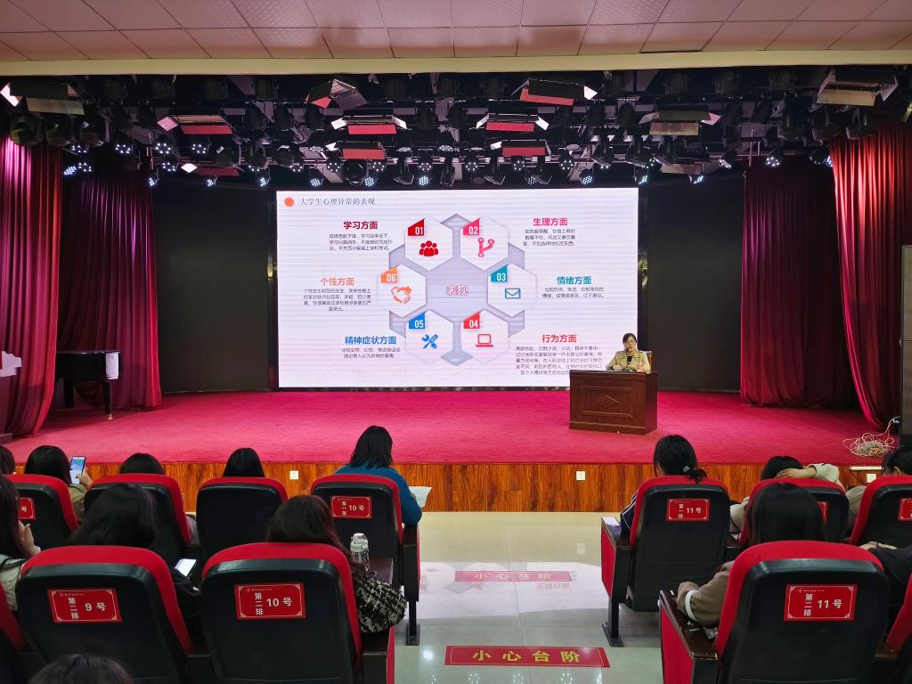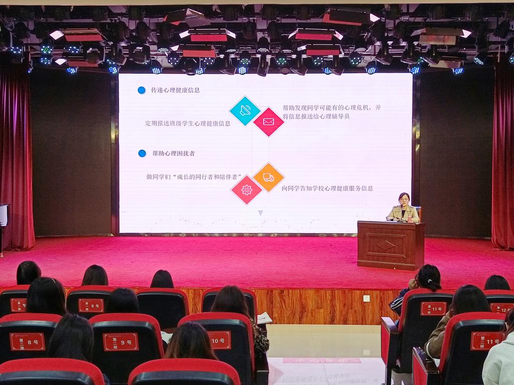 为夯实公司心理健康教育工作基础,落实心理育人模式,有效实行朋辈互助工作,3月8日晚上,yl7703永利在一楼演播厅开展心理委员培训专题讲座。讲座由心理健康中心王亚琳老师主讲,学管办主任郑玉凡主持,21、22级各班寝室长和心理委员到场聆听。