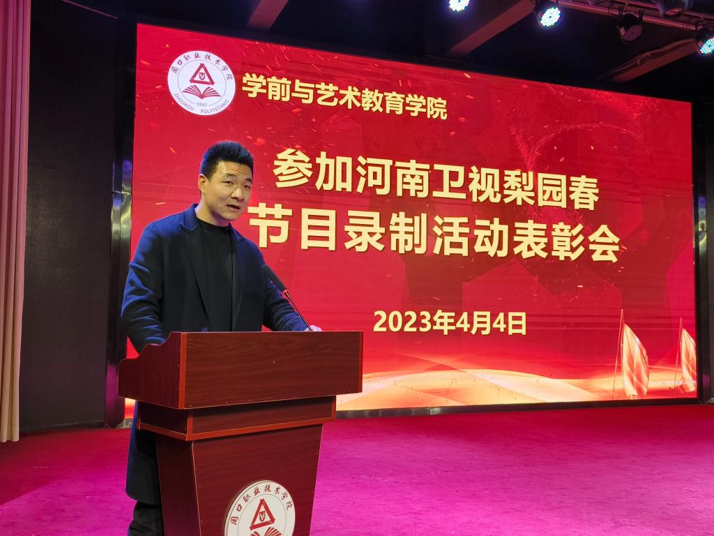 为鼓励先进,激励他人,4月4日下午,yl7703永利在艺术演播厅隆重召开参加河南卫视梨园春节目录制活动表彰会。公司党总支书记王春生、经理高岐奎带领公司班子成员,党委宣传部宣传科长,院团总支书记及相关指导教师出席会议,各班班委、员工代表参加会议。会议由副经理崔彤彤主持。