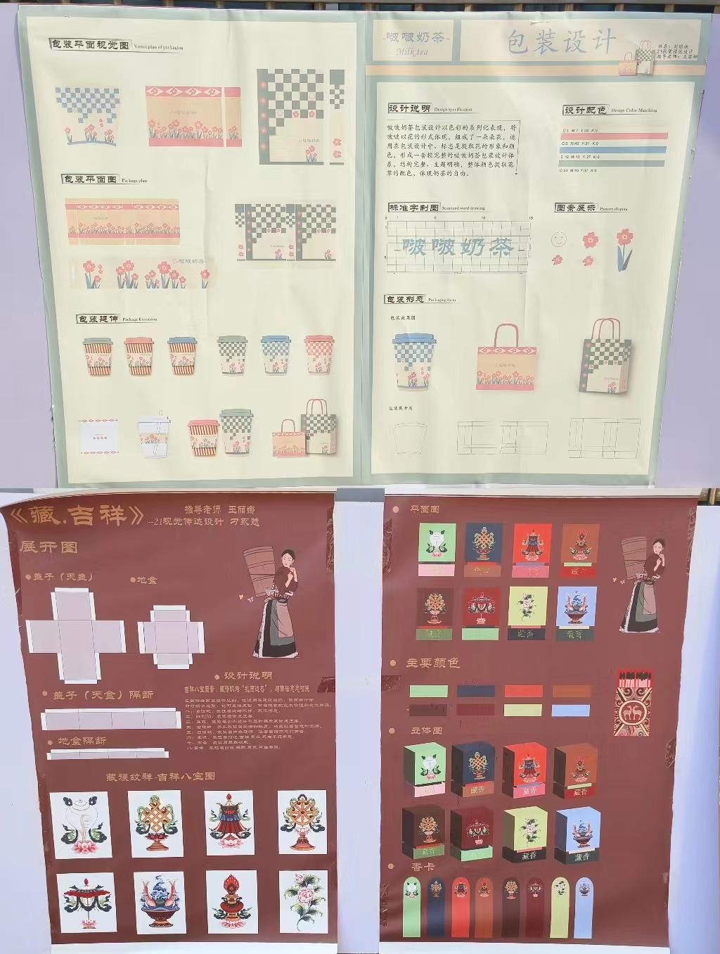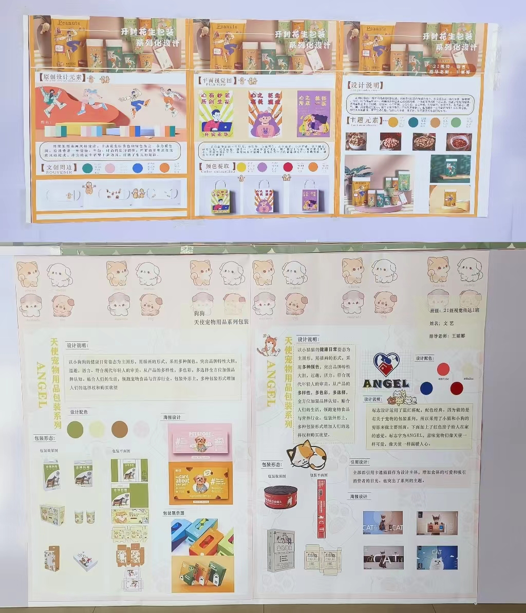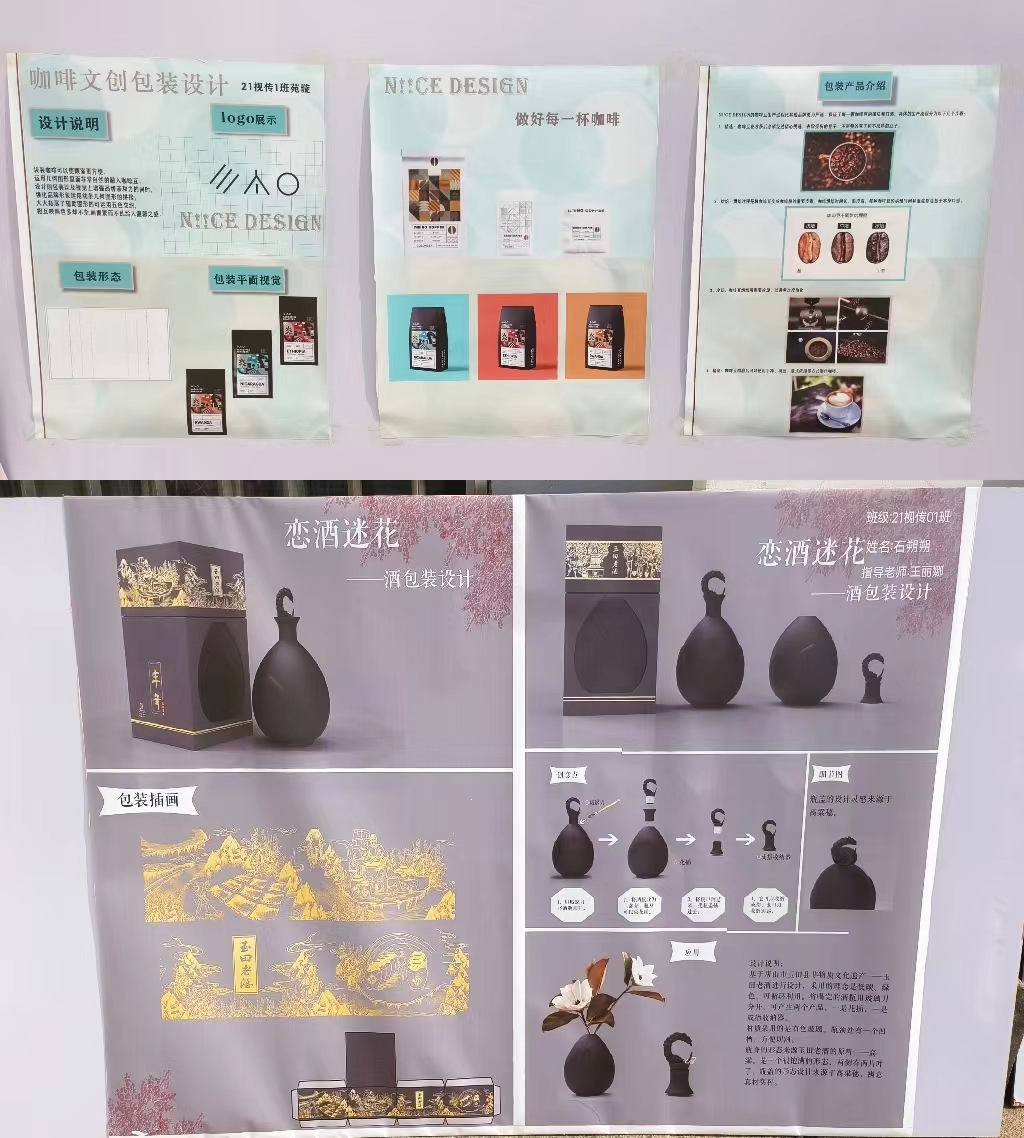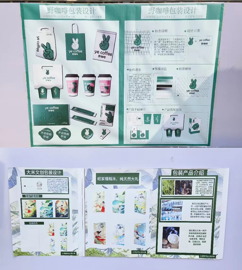 由美术教研室举办的21级视觉传达设计专业《包装设计》课程作品汇报展于5月31日在yl7703永利广场展出。通过对本课程的学习,在任课老师王丽娜的指导下,同学们掌握了包装设计流程和包装设计的理念。本次汇报展共展出110多幅作品,作品内容丰富,有节庆礼盒、茶品系列、藏香系列、食品系列、母婴产品系列等包装设计。汇报展反映了同学们积极认真的学习态度和良好的学习成果。达到了以展促学,以展促教的教学效果。