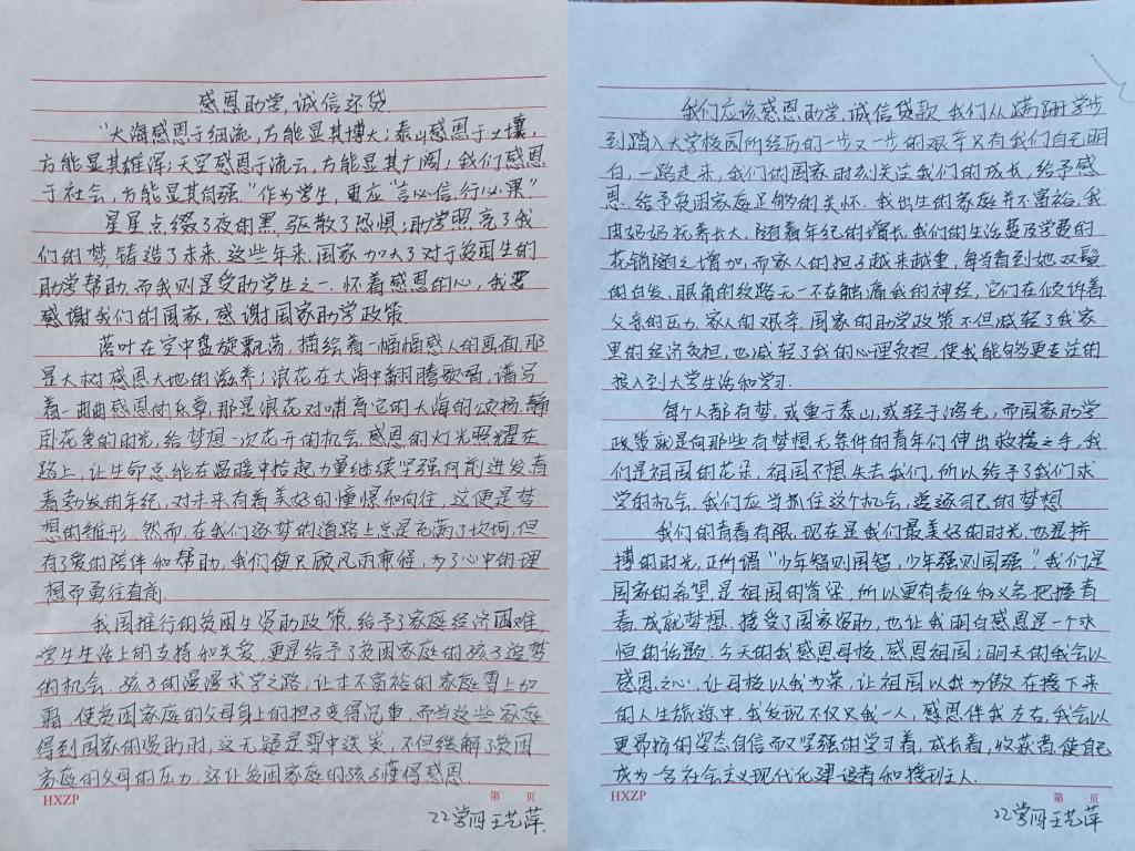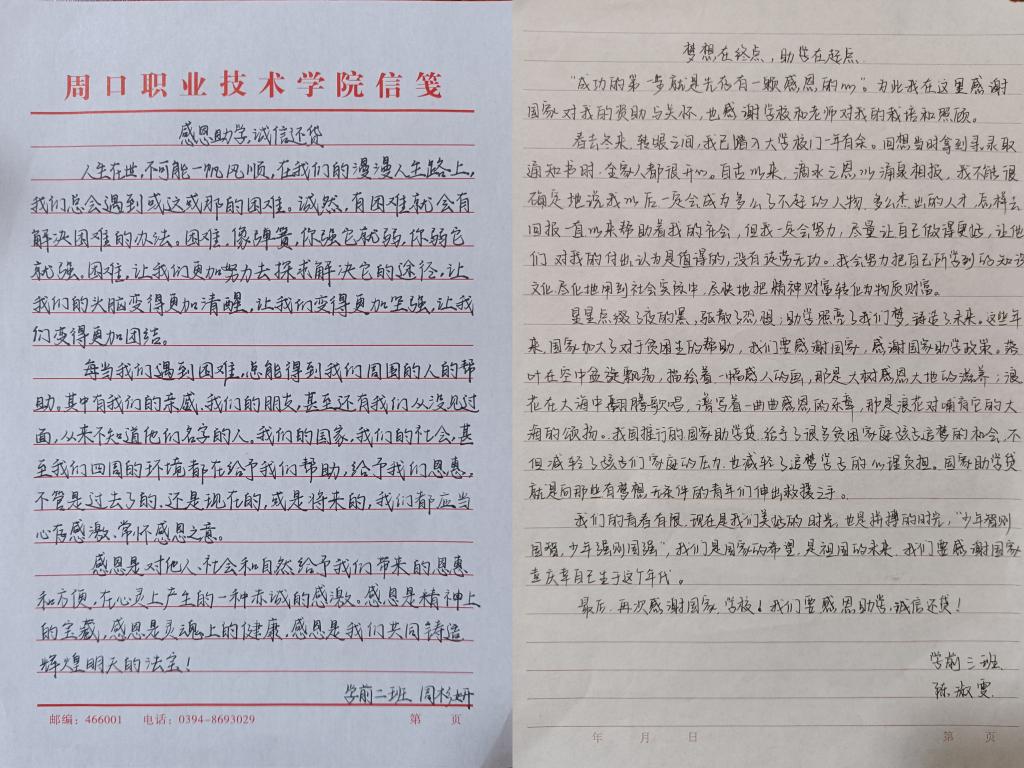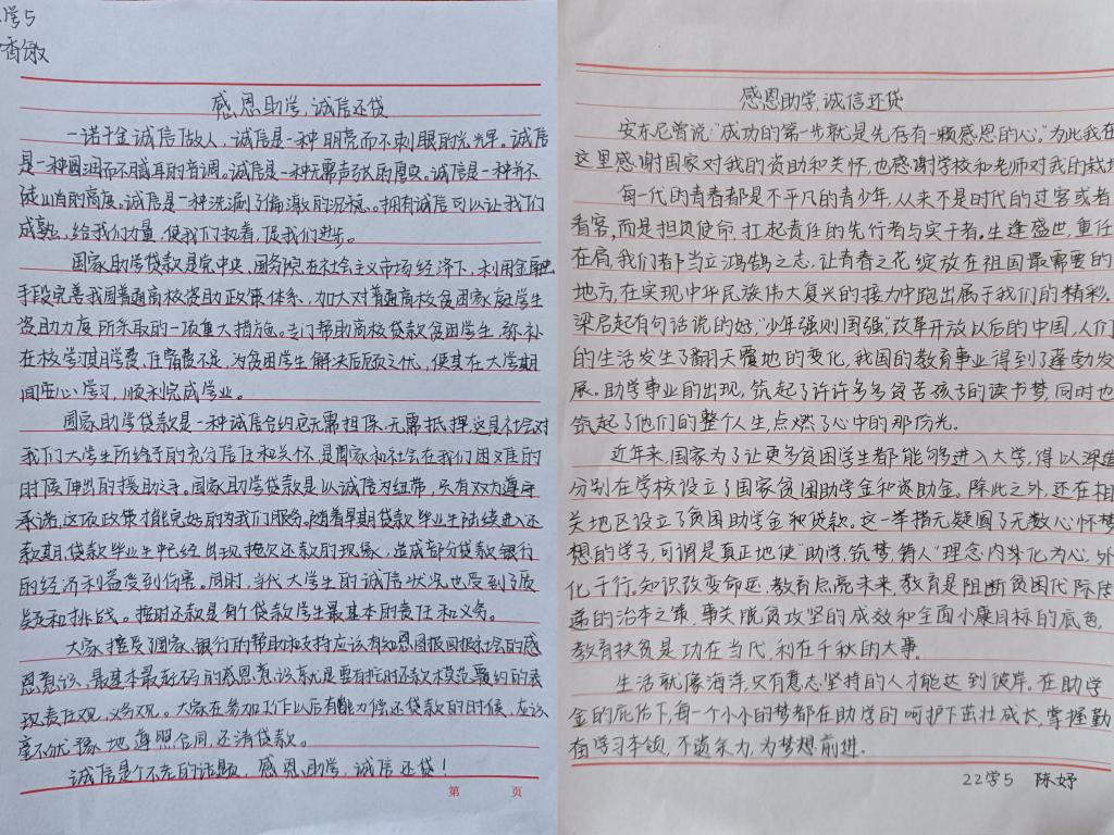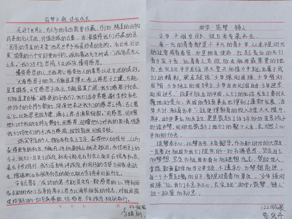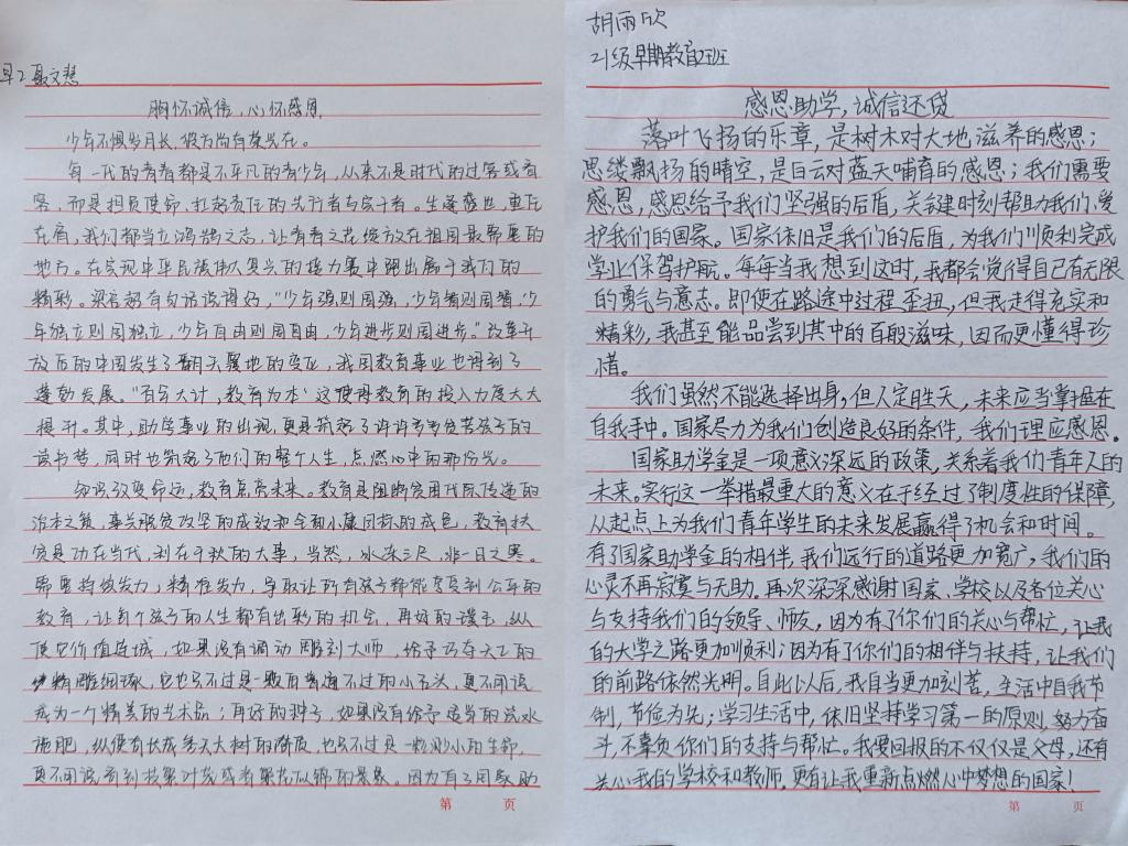同学们挥笔泼墨、积极投稿,表达着对国家资助政策的感激和对公司及家人的感恩之情。文中语言朴实,情感流露,让人内心久久不能平静。