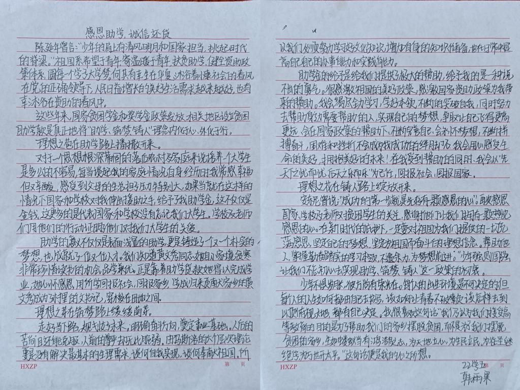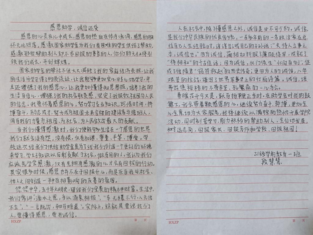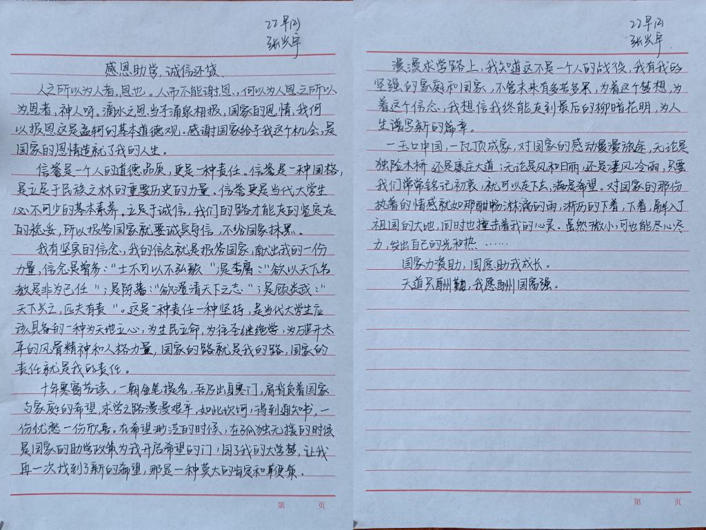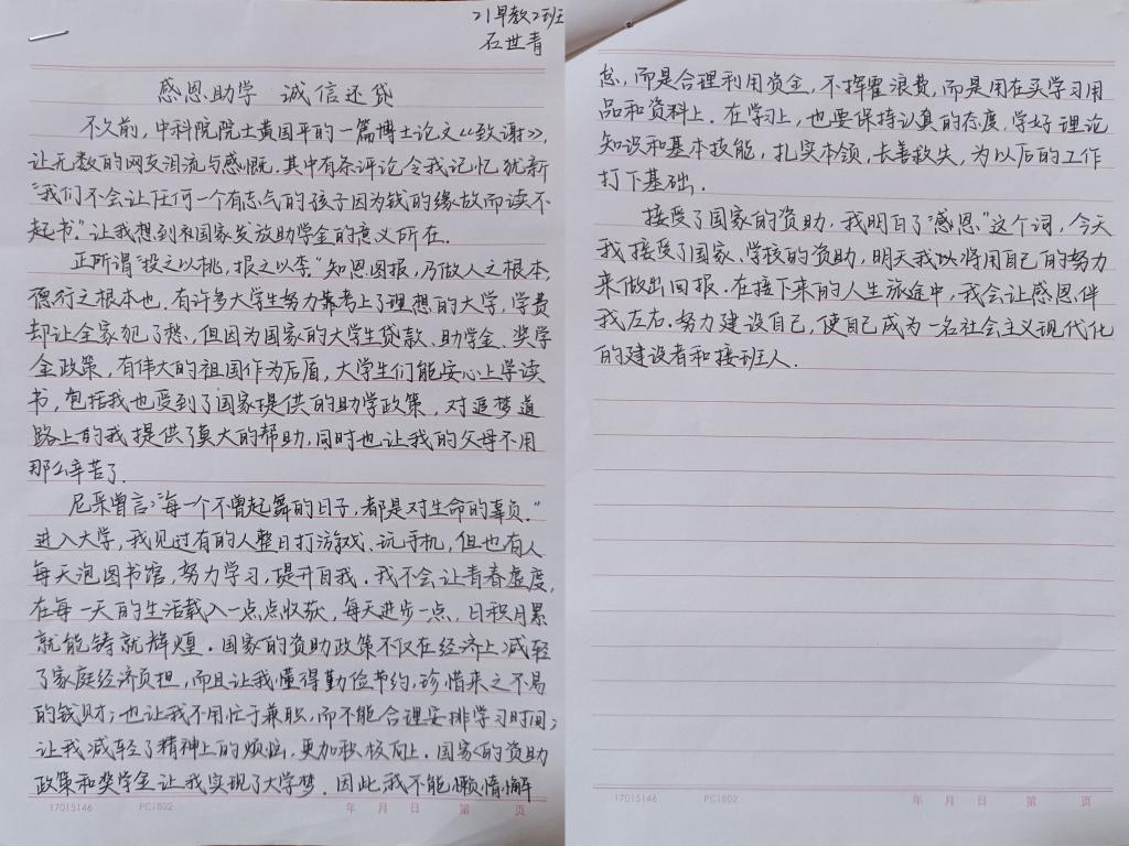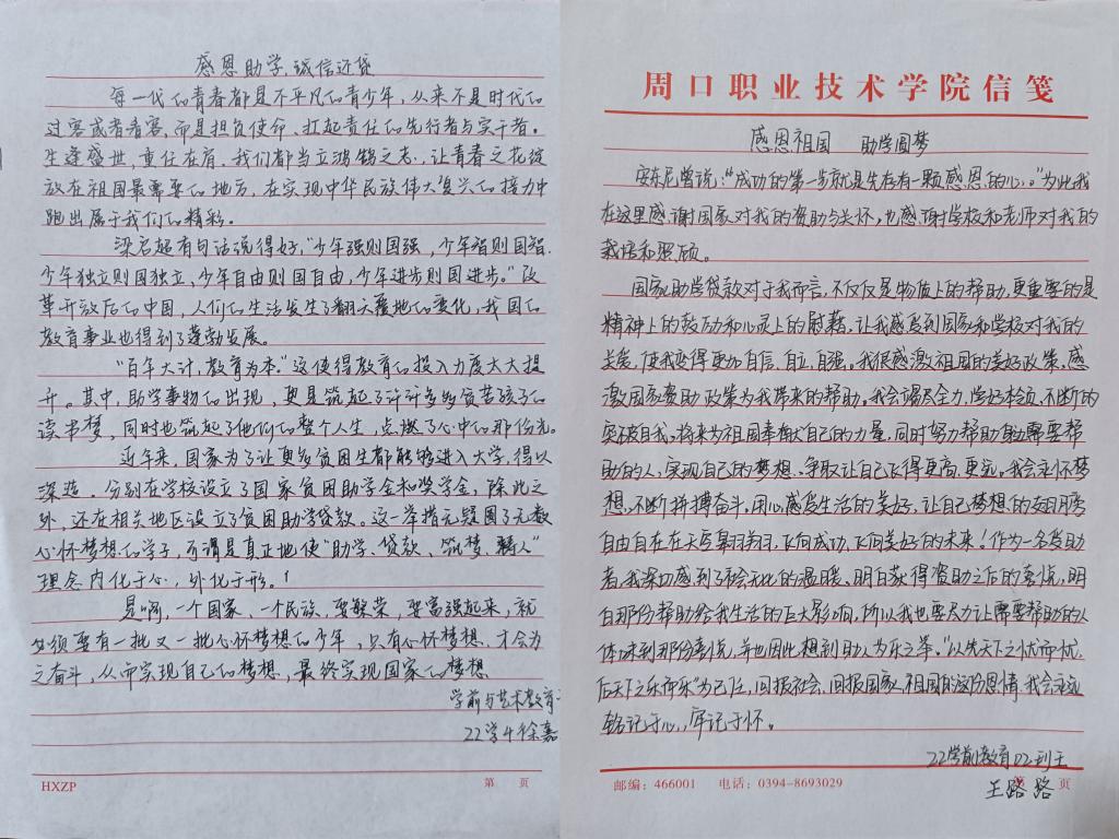 同学们挥笔泼墨、积极投稿,表达着对国家资助政策的感激和对公司及家人的感恩之情。文中语言朴实,情感流露,让人内心久久不能平静。