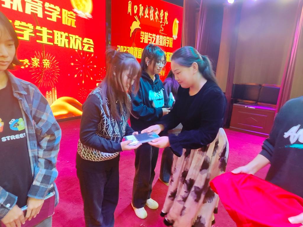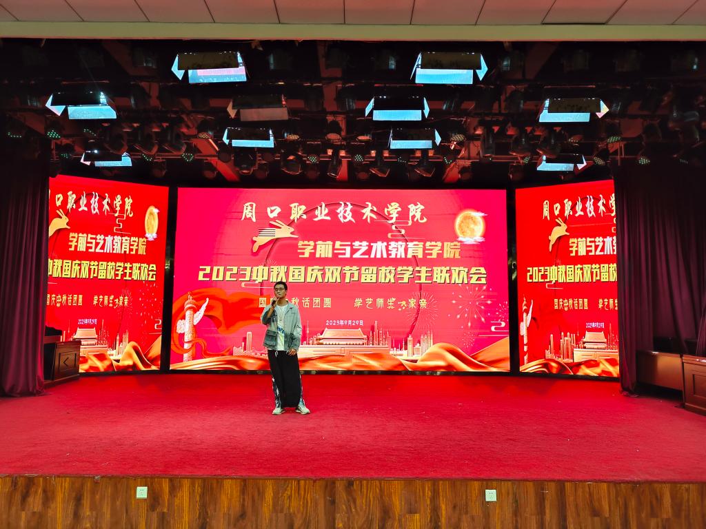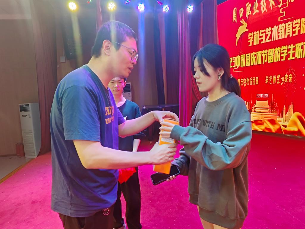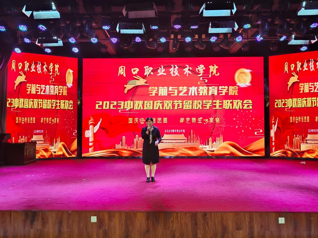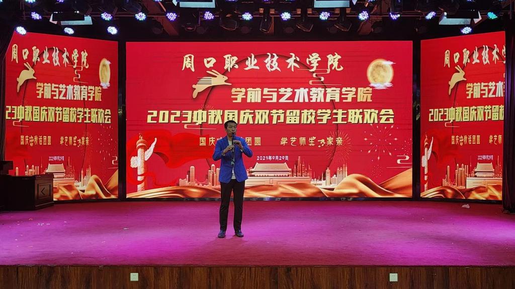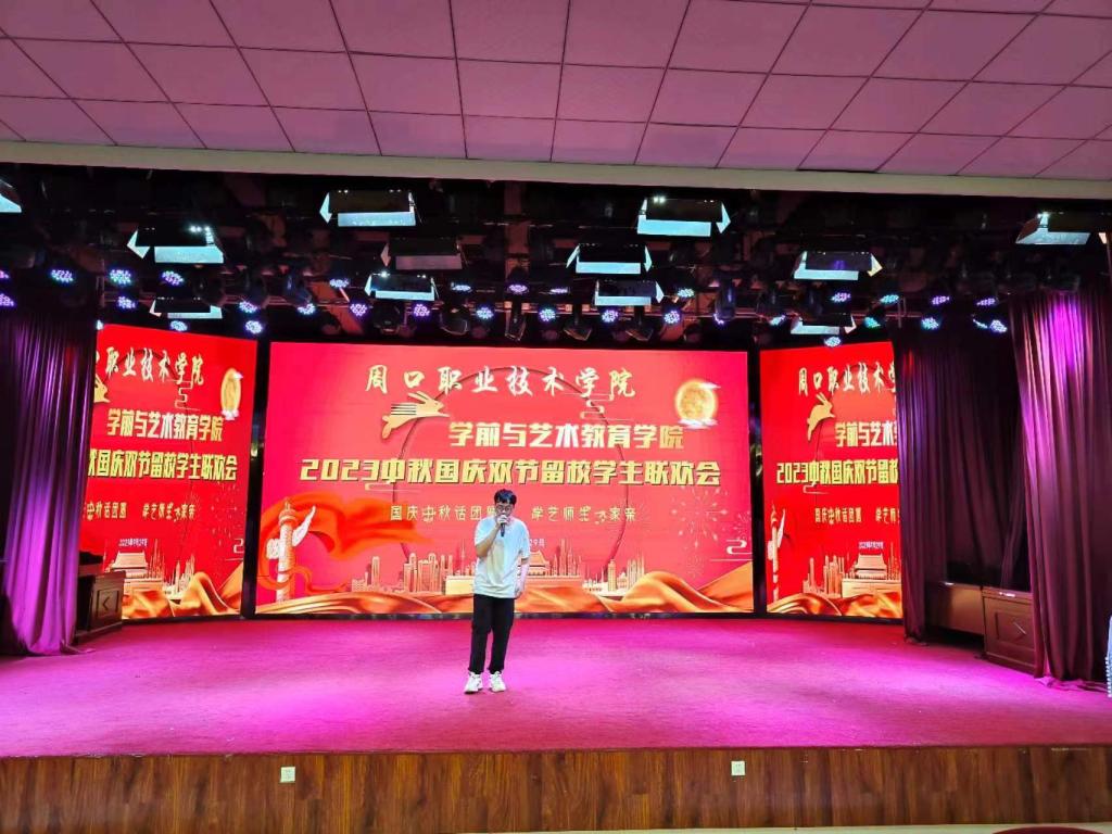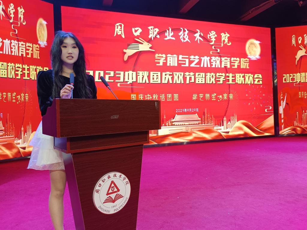 随后,留校员工代表23级学前教育三班李梅同学发言。首先,她对公司领导和老师们表示最诚挚的感谢。她通过本次公司举办的中秋国庆双节留校员工联欢会,感受到了“家”的温暖和关怀。她表示,在未来的学习和生活中,一定会更加努力,实现自己的梦想。