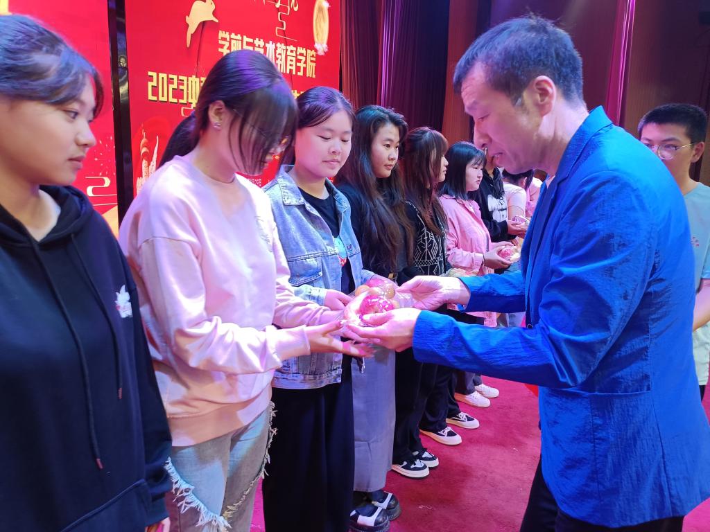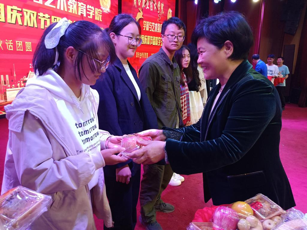首先,副董事长于爱霞致辞。她向同学们致以节日的诚挚问候和美好祝愿,为学艺学子送上浓浓关怀。国庆中秋话团圆,学艺师生一家亲,在这阖家团圆的日子里让我们一起共度中秋国庆双节,吃月饼、赏节目,希望让同学们感受到家的温馨和温暖!