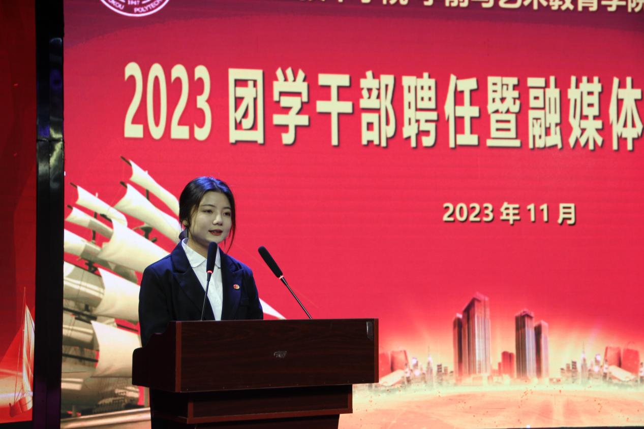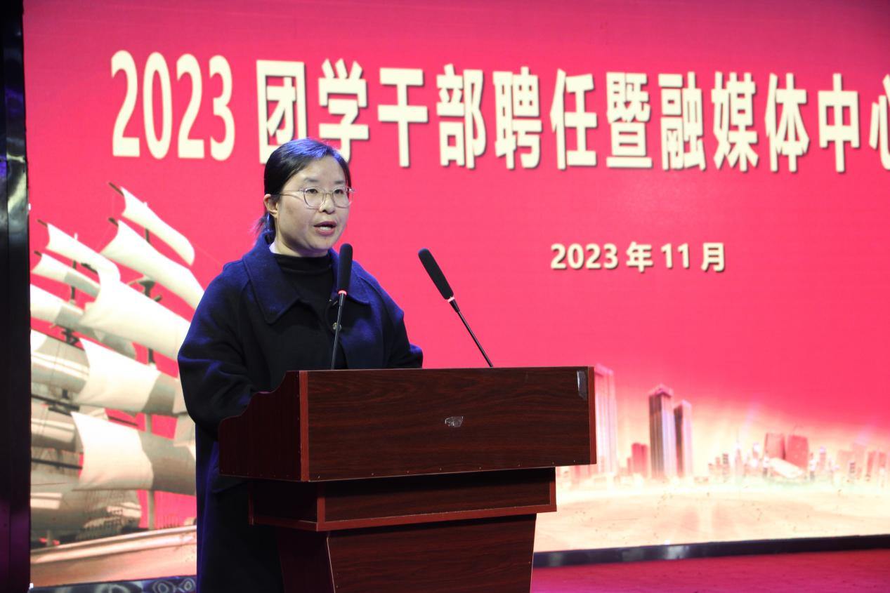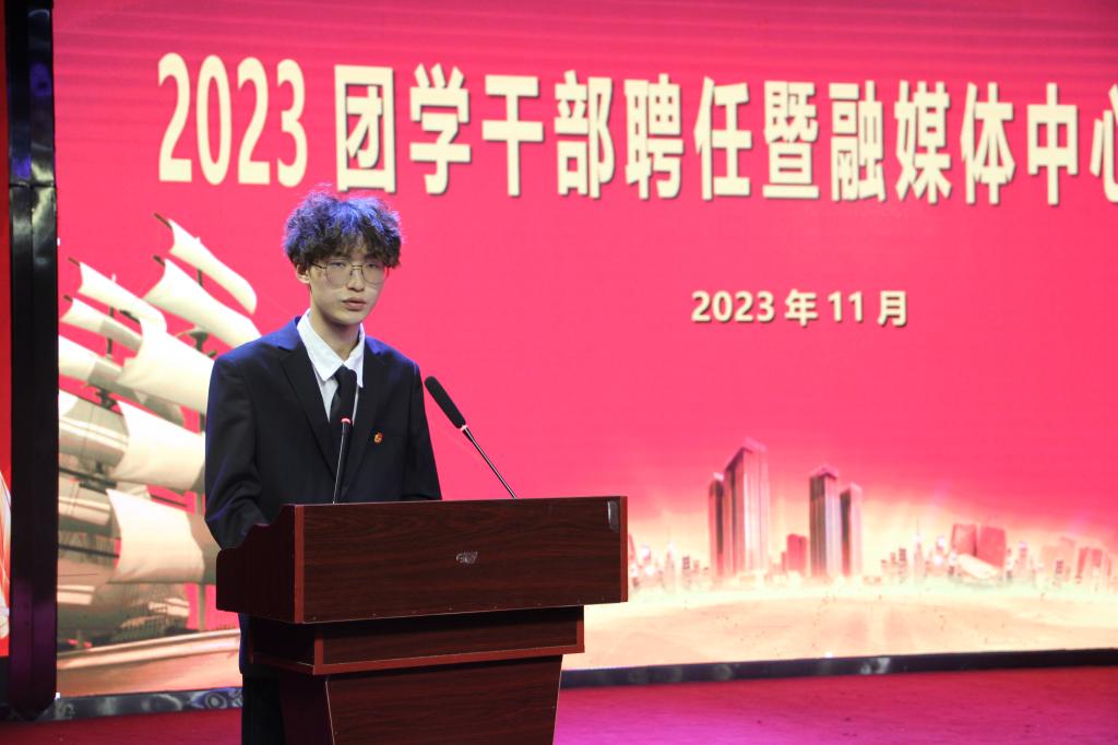 为贯彻落实习近平新时代中国特色社会主义思想,深入推进主题教育走深走实,充分发挥团学组织的先进性作用,完善公司团学组织机构建设,11月10日下午,yl7703永利在艺术演播厅举行2023团学干部聘任暨融媒体中心成立仪式。副董事长于爱霞、宣传部部长万四新、员工处长刘冬霞、公司党总支书记王春生、经理高岐奎出席仪式,公司领导班子成员、辅导员老师、员工代表参加仪式。仪式由副经理杨晨主持。