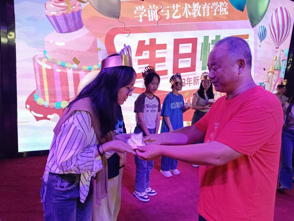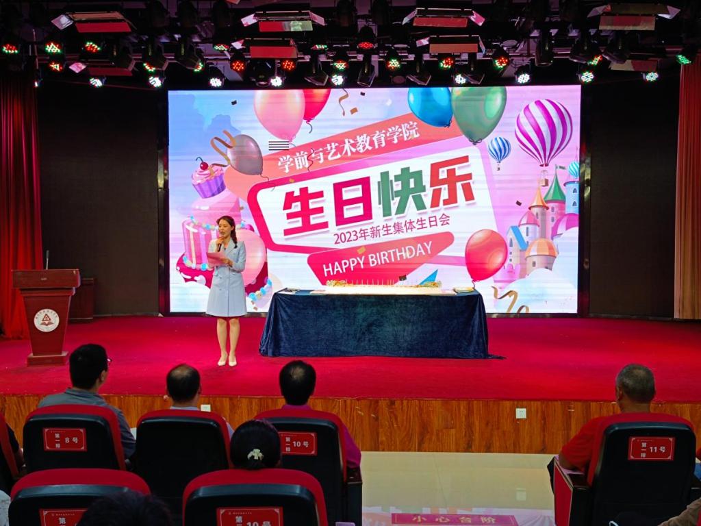 伴随着全场师生合唱生日歌
