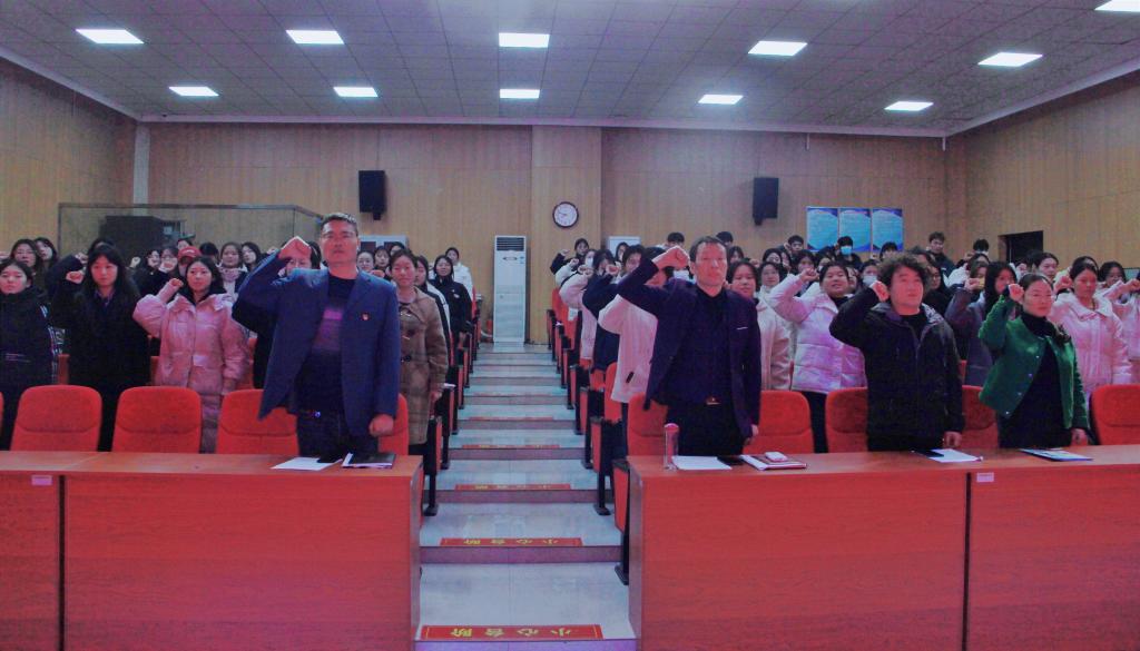 最后,学管办主任郑玉凡带领同学们庄严宣誓。掷地有声的誓言,激励同学们以积极向上的精神面貌投入到活动中去。