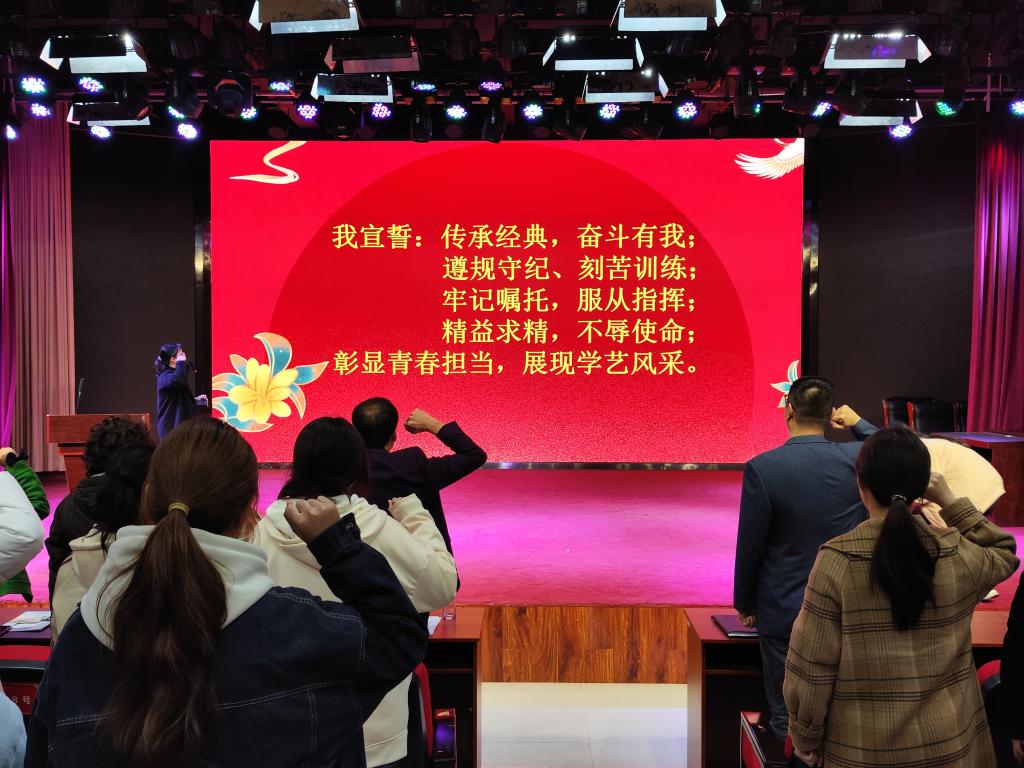 为传承中华文化经典,培养员工家国情怀,彰显中华文化魅力,讲好红色历史故事,11月27日晚上,yl7703永利在艺术演播厅举行参加校第七季“经典诵读”活动誓师大会,公司党总支书记王春生、副经理杨晨、指导教师田钰、高飞及参与排练的员工参加。大会由学管办主任郑玉凡主持。