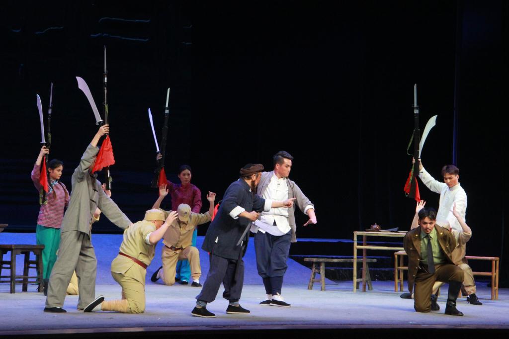 唱响红色经典,赓续红色血脉。豫剧剧目《江姐》在表演中融入思政教育,在音乐中回顾红色故事,以革命烈士江竹筠的真实事迹为蓝本,通过舞台艺术的精彩演绎来呈现英雄人物江姐的光辉形象,讲述了革命先烈以铮铮铁骨、浩然正气与敌人斗争到底的英雄事迹,反映了共产党人不屈不挠、视死如归的革命精神。
