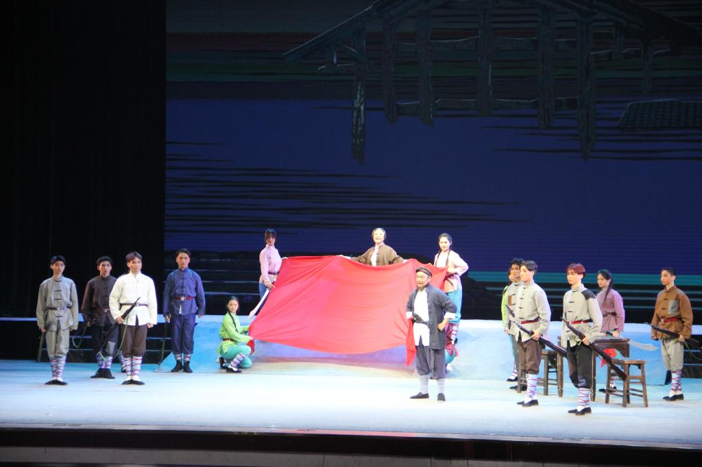 演出现场,悠扬的音乐响起,全剧徐徐展开。演出场景不断转换、环环相扣,生动再现了江姐深入敌后开展革命运动、痛失爱人、不幸被捕再到狱中奋勇抗争的经历,带领现场观众共同追寻先烈足迹,重温共产党人的初心使命。整场剧目情节跌宕起伏,塑造了饱满生动的人物形象,为大家带来了强烈的心灵震撼和振奋人心的视听享受,台下掌声经久不息。