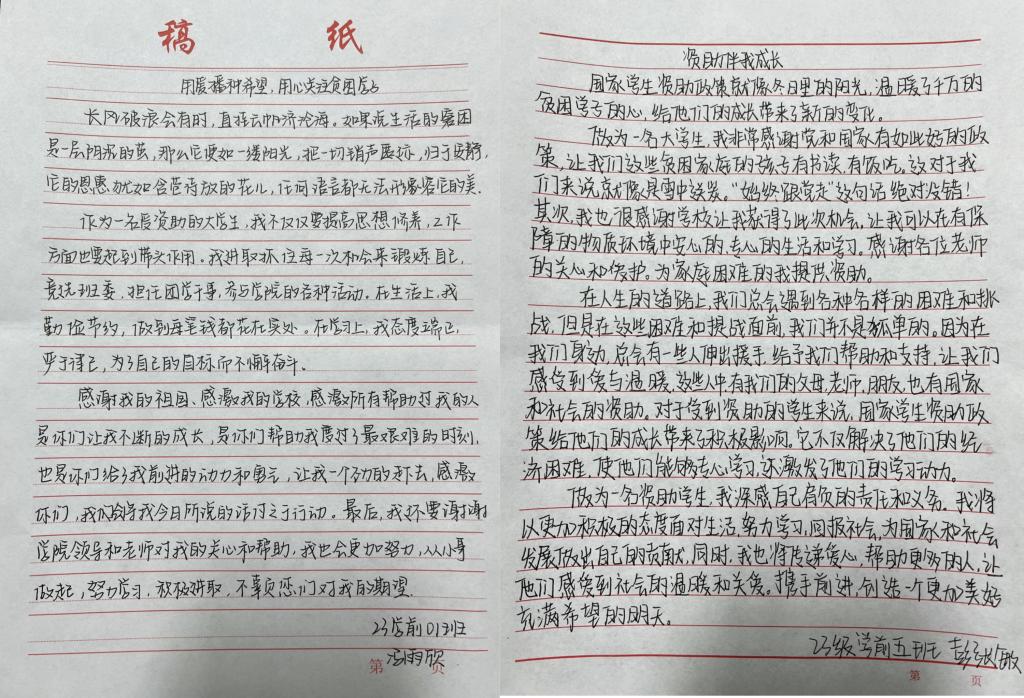 为大力宣传国家资助政策及成效,进一步加强员工思想政治教育,激发员工爱国情怀,培养员工诚信感恩意识,10月16—20日,公司开展2023-2024学年第一学期员工资助“两节课”之“感恩助学,筑梦铸人”主题征文活动。公司全体在校生参加本次活动。