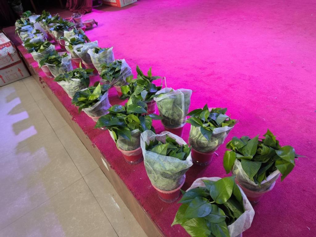 活动现场一盆盆绿植整齐摆放等待着有爱心的“小主人”带它回家哟