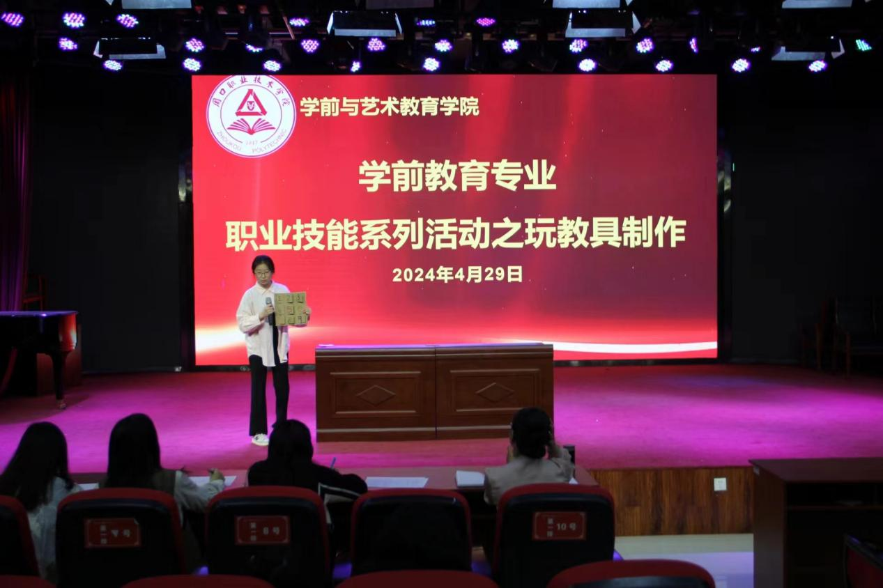 为提高员工动手实践能力以及对专业知识的掌握水平,助推员工专业技能发展,为员工职业发展奠定基础,4月29日下午,yl7703永利学前教育专业在艺术演播厅举办职业技能系列活动之玩教具制作比赛。yl7703永利副经理耿润、教管办主任李晨阳、学前教研室主任吕维康出席比赛,学前教育专业教师及员工参加比赛。