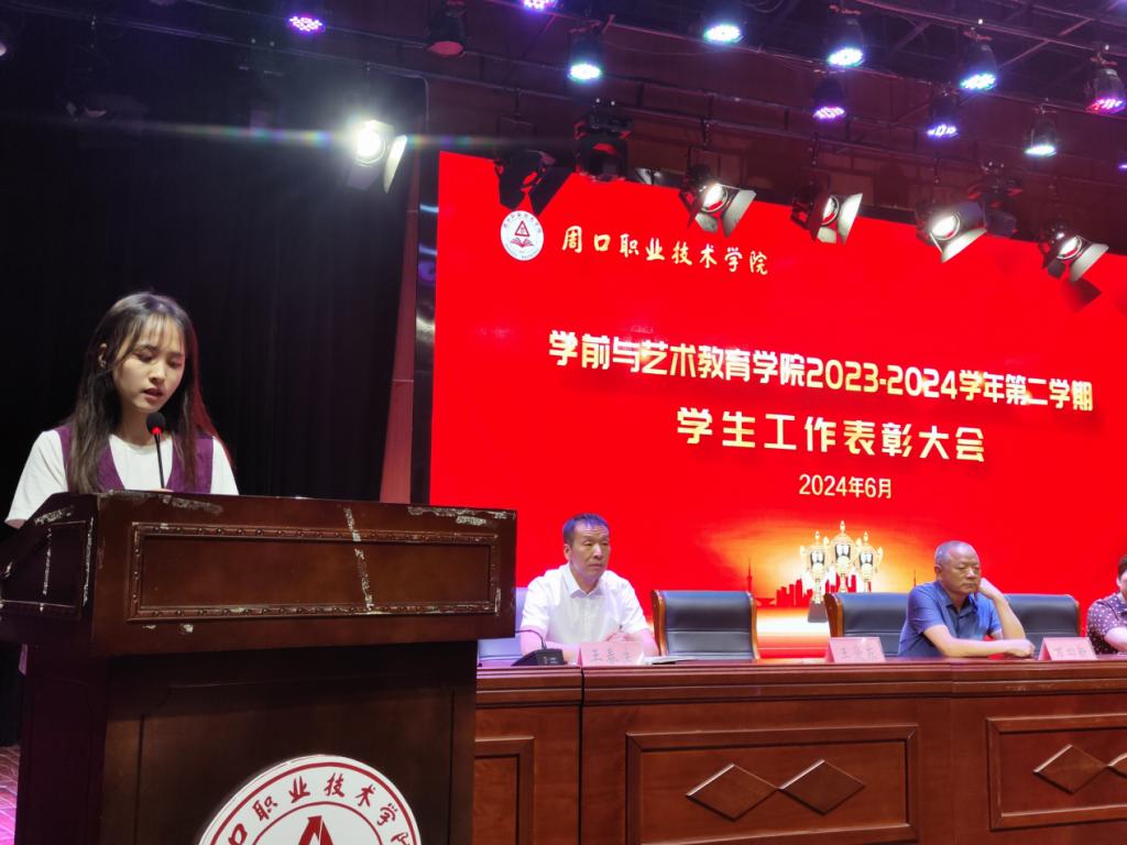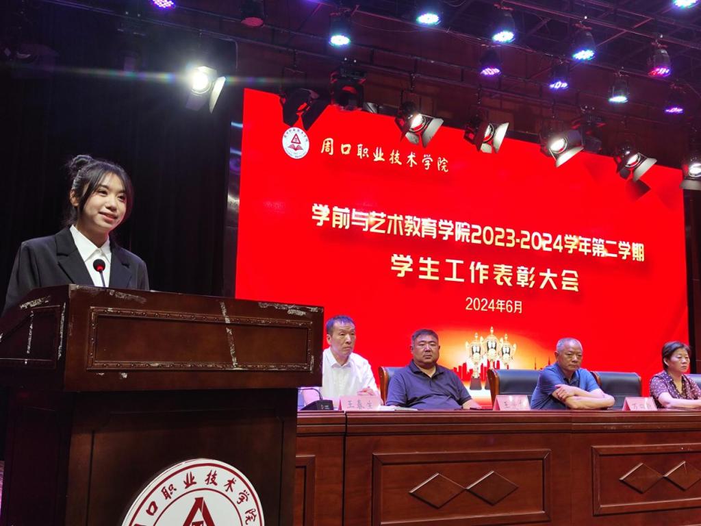三好员工代表23级学前教育四班荣冰倩同学表示,作为一名老员工,我们应当保持谦虚谨慎的态度,不断反思自己,不断进步。同时作为新时代青年,每个人都秉承“砺德砺能,志存高远"的校训,与公司同舟共济,破浪前行,共同创造yl7703永利美好、灿烂的明天。