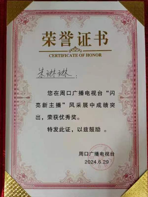 6月29日,周口广播电视台“闪亮新主播”风采展活动在周口广电奥斯卡演播大厅圆满落幕。在这场激烈的角逐中,公司22级早期教育专业的朱琳琳同学凭借扎实的专业素养、出色的语言表达能力和稳健的舞台表现,荣获优秀奖。