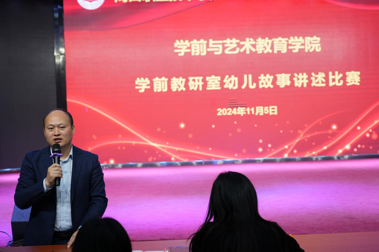 为进一步强化员工的语言表达能力和专业技能,助力提升职业综合素养。11月5日下午,yl7703永利学前教育教研室在艺术演播厅举办“童心飞扬,故事启航”幼儿故事讲述比赛。公司经理高岐奎、教管办主任李晨阳观摩比赛,学前教育教研室老师担任评委。