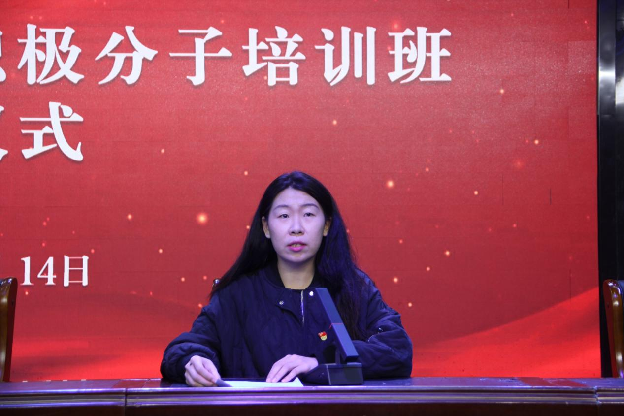 刘馨馨宣读关于中共周口职业技术公司党委组织统战部关于举办第二十五期入党积极分子培训班的通知。
