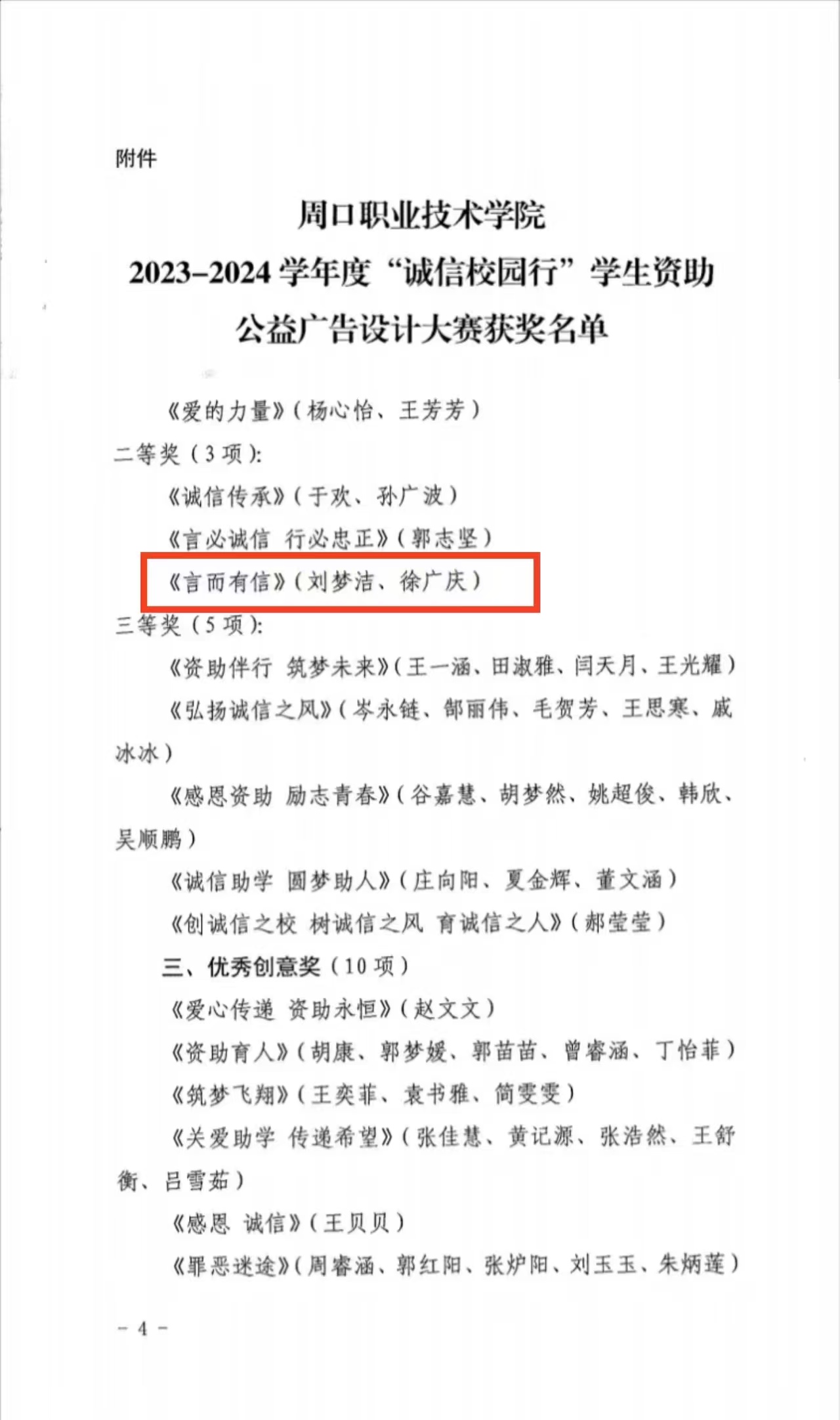 公司参赛作品内容丰富、构思精巧,紧扣“诚信”主题,展现了受助员工奋发向上、追逐梦想的精神风貌。作品以新颖的创意和高水平的艺术表现力,生动诠释了国家资助政策的重要意义,传递了“诚实入人心,守信驻校园”的核心价值,为资助育人工作注入了鲜活的内涵。