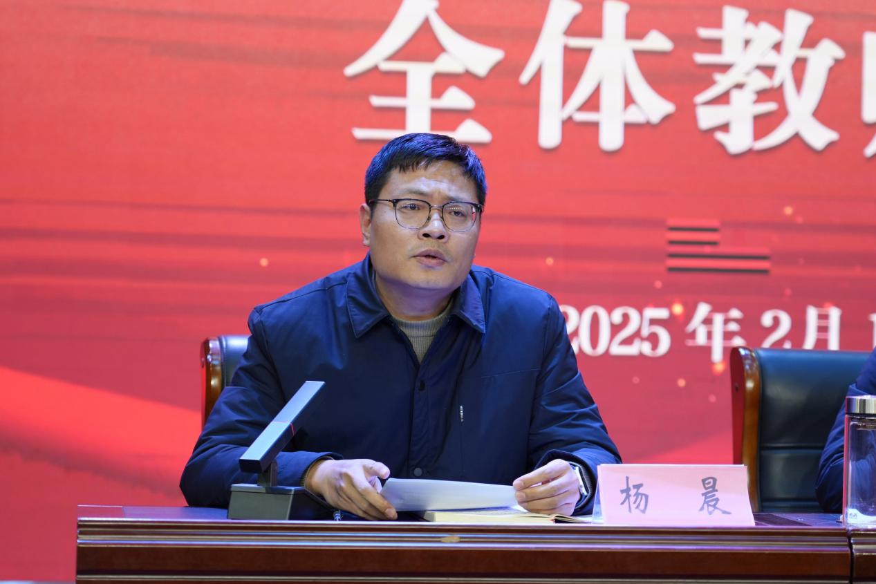 为明确2025年发展目标,部署本学期重点工作,推动公司各项事业蓬勃发展。2月18日,yl7703永利在艺术演播厅召开2025年春季学期第一次全体教师会。公司副董事长王隼出席会议,公司全体教职工参加会议。会议由党总支书记王春生主持。