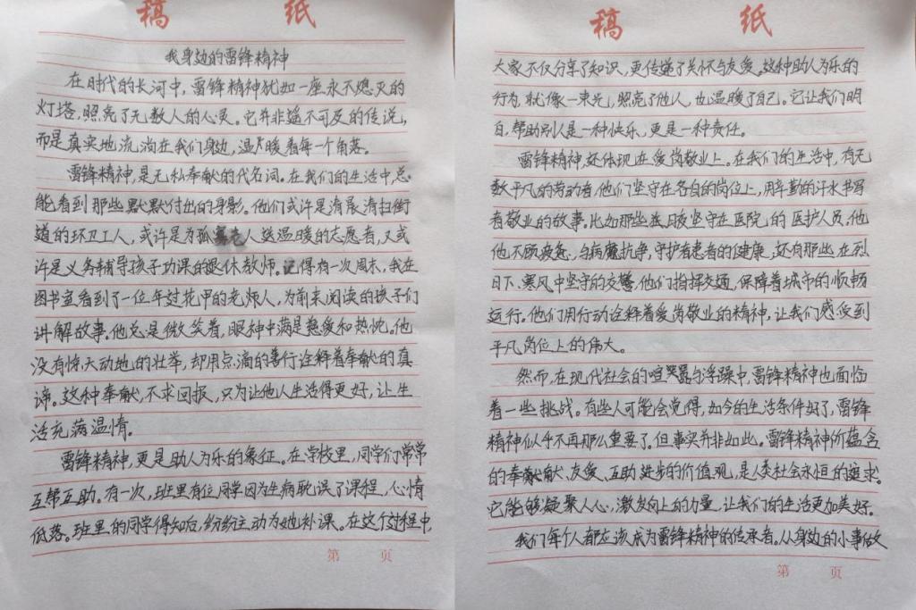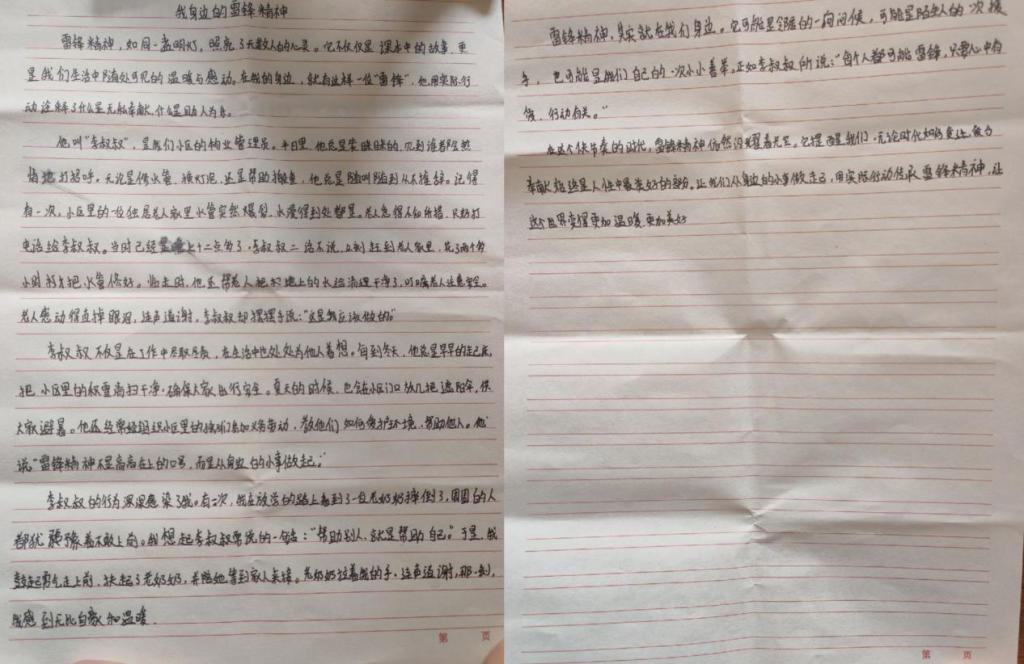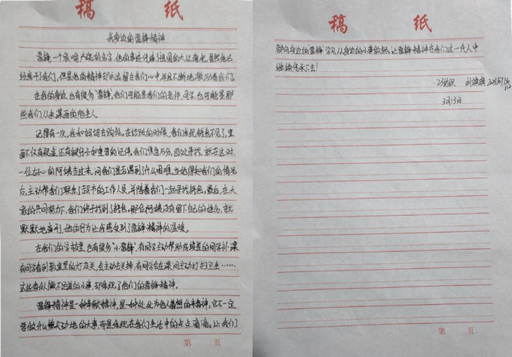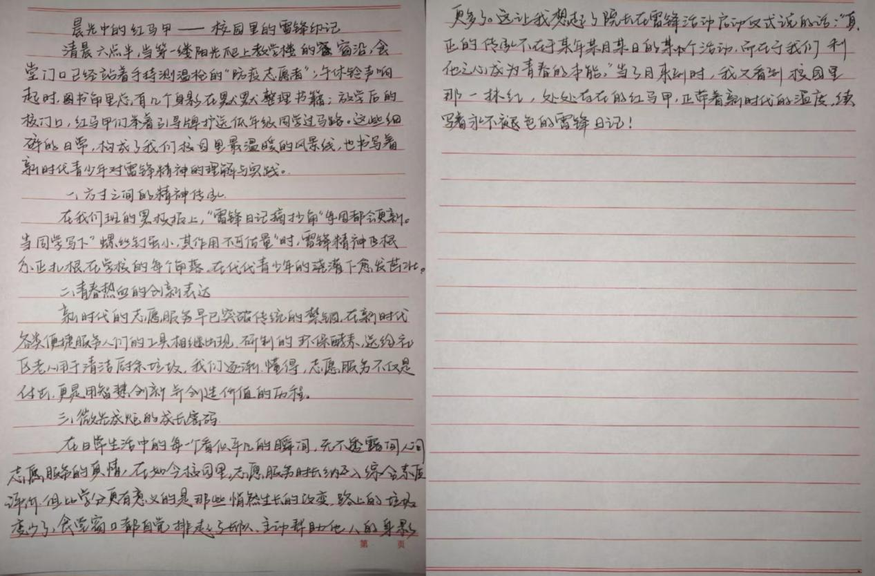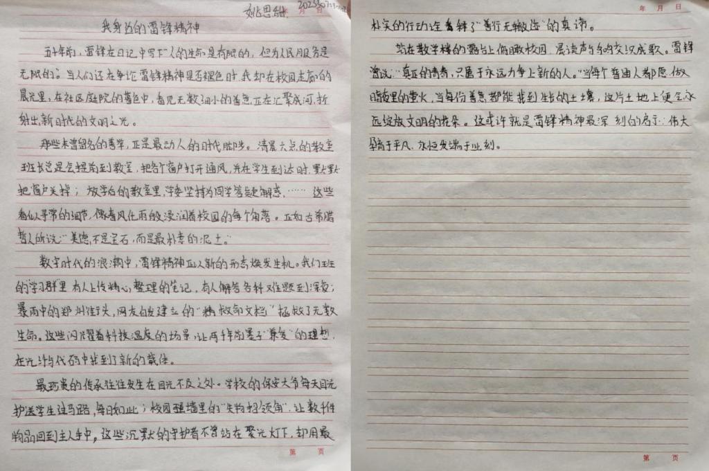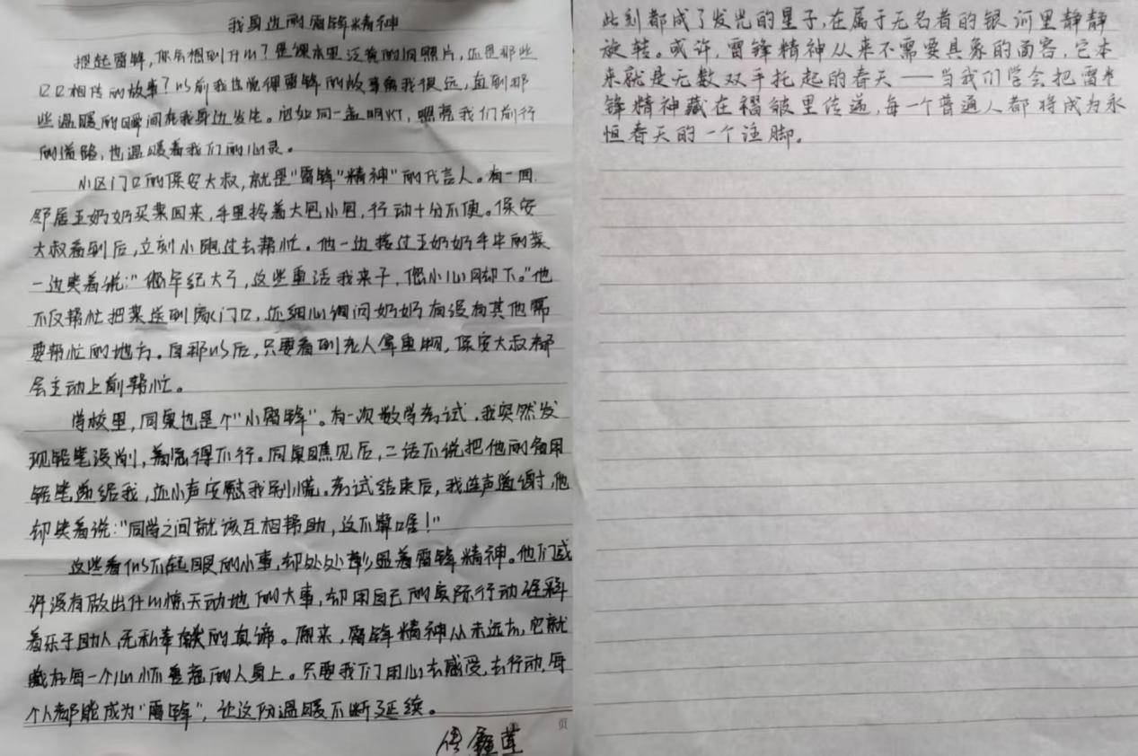 活动中,同学们认真阅读雷锋事迹,采访身边践行雷锋精神的榜样,多维度深入探究,结合自身感悟,用细腻的笔触和真挚的情感撰写出一篇篇主题鲜明、内容充实的文章,生动诠释了新时代雷锋精神的价值内核。