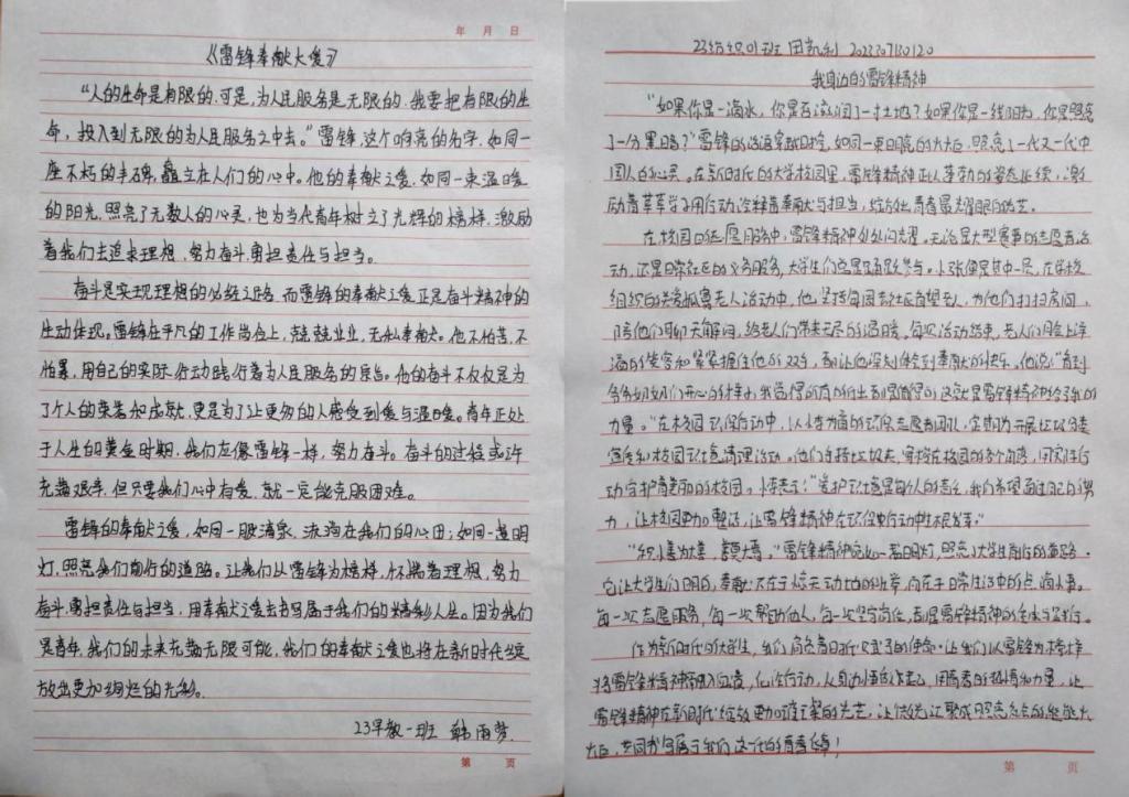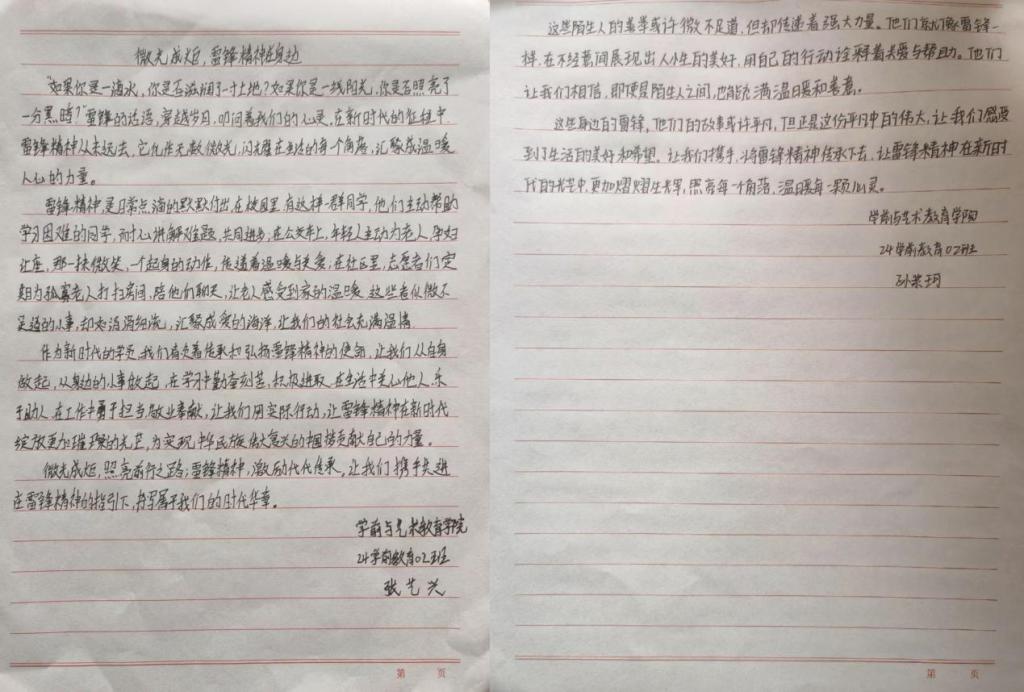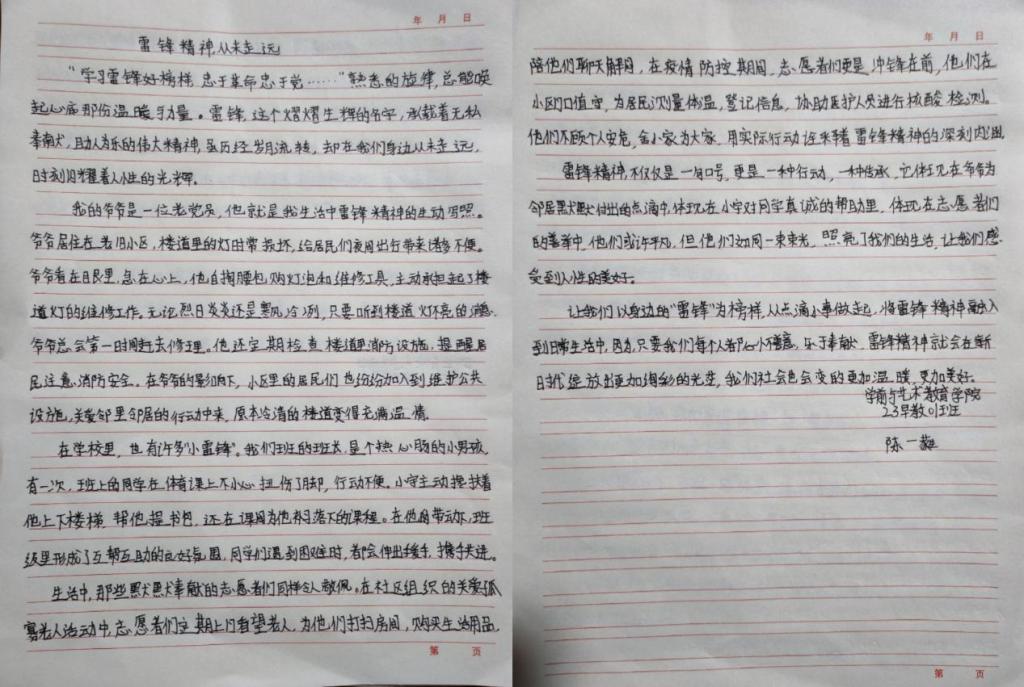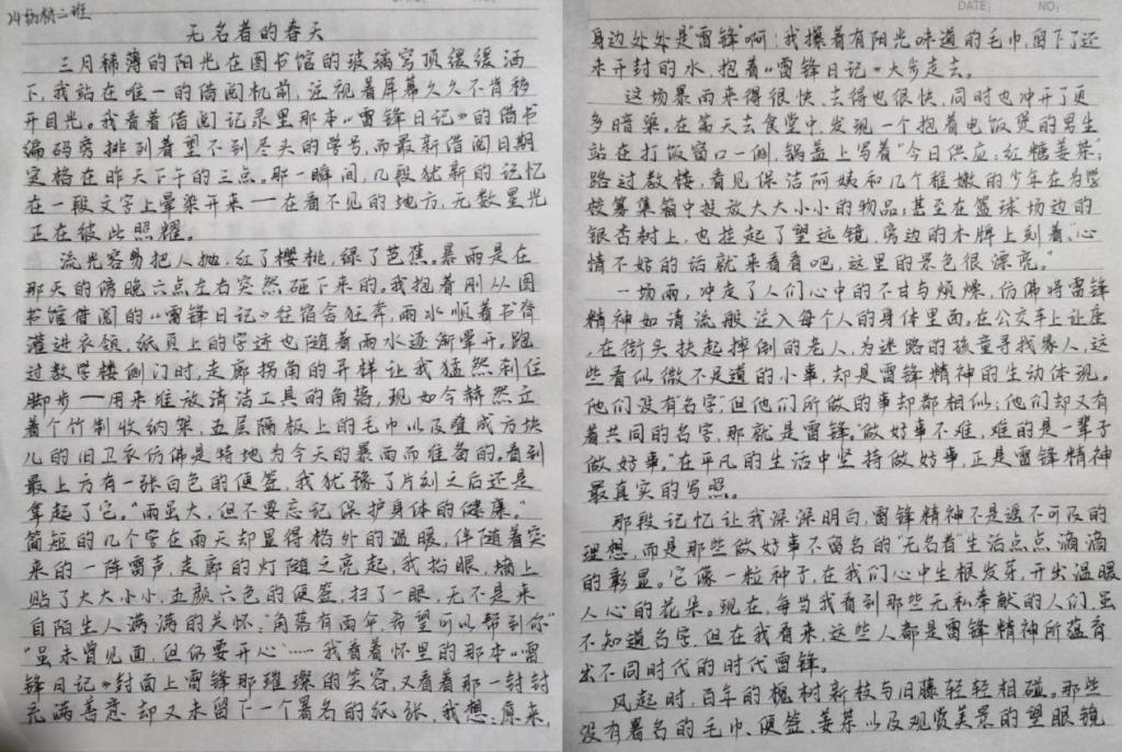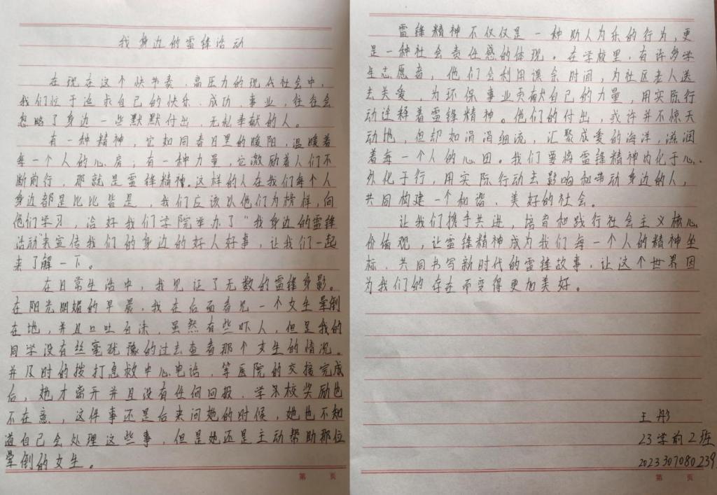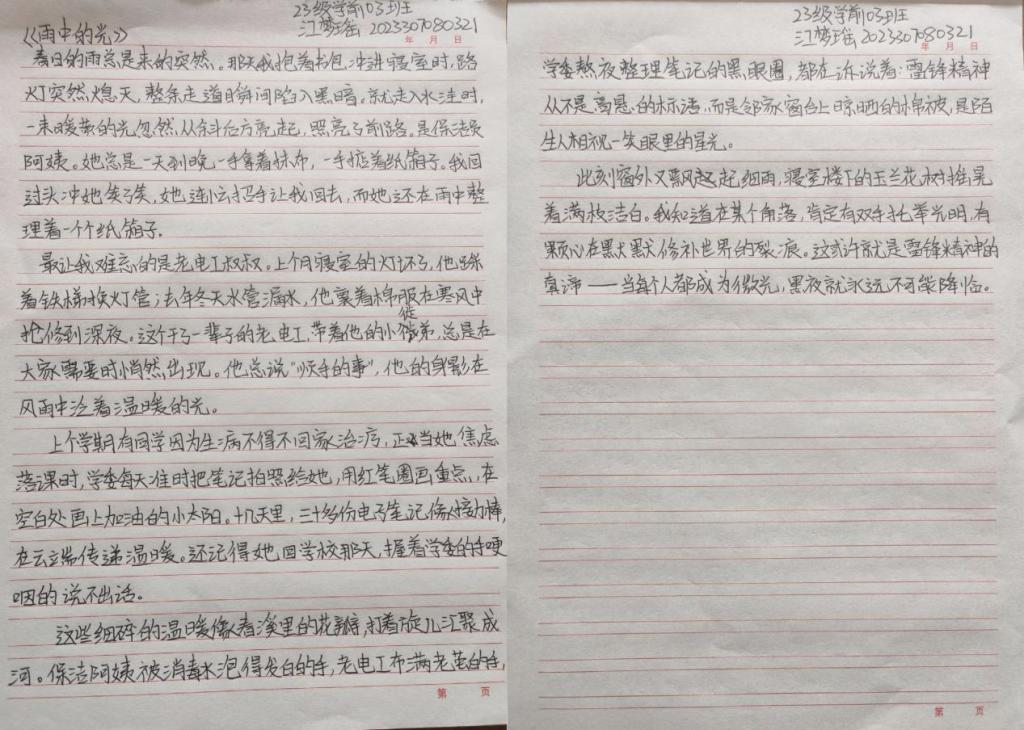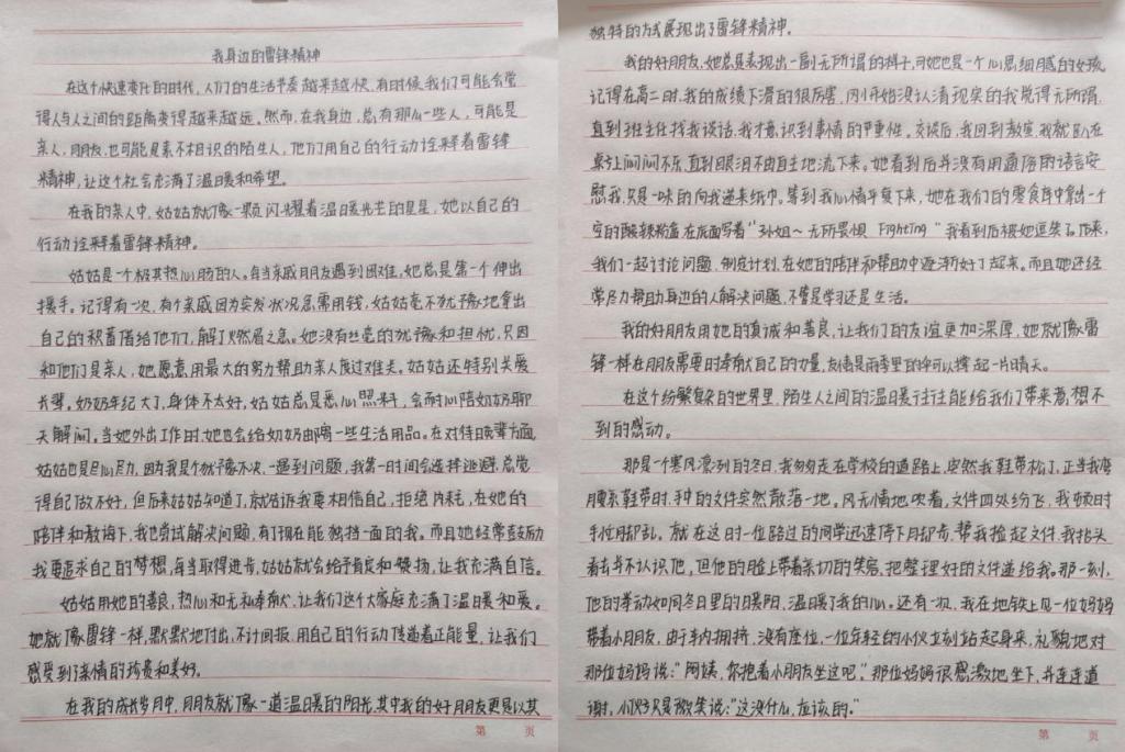 活动中,同学们认真阅读雷锋事迹,采访身边践行雷锋精神的榜样,多维度深入探究,结合自身感悟,用细腻的笔触和真挚的情感撰写出一篇篇主题鲜明、内容充实的文章,生动诠释了新时代雷锋精神的价值内核。