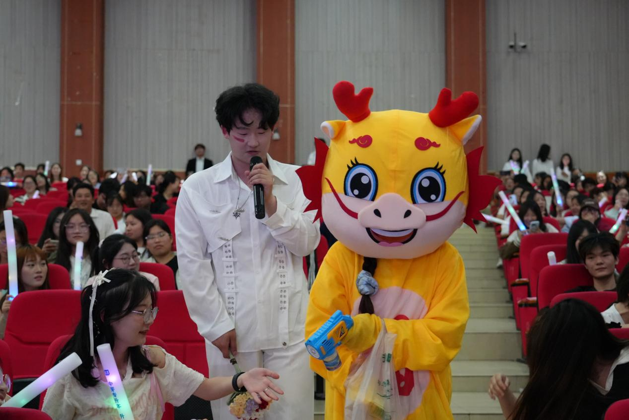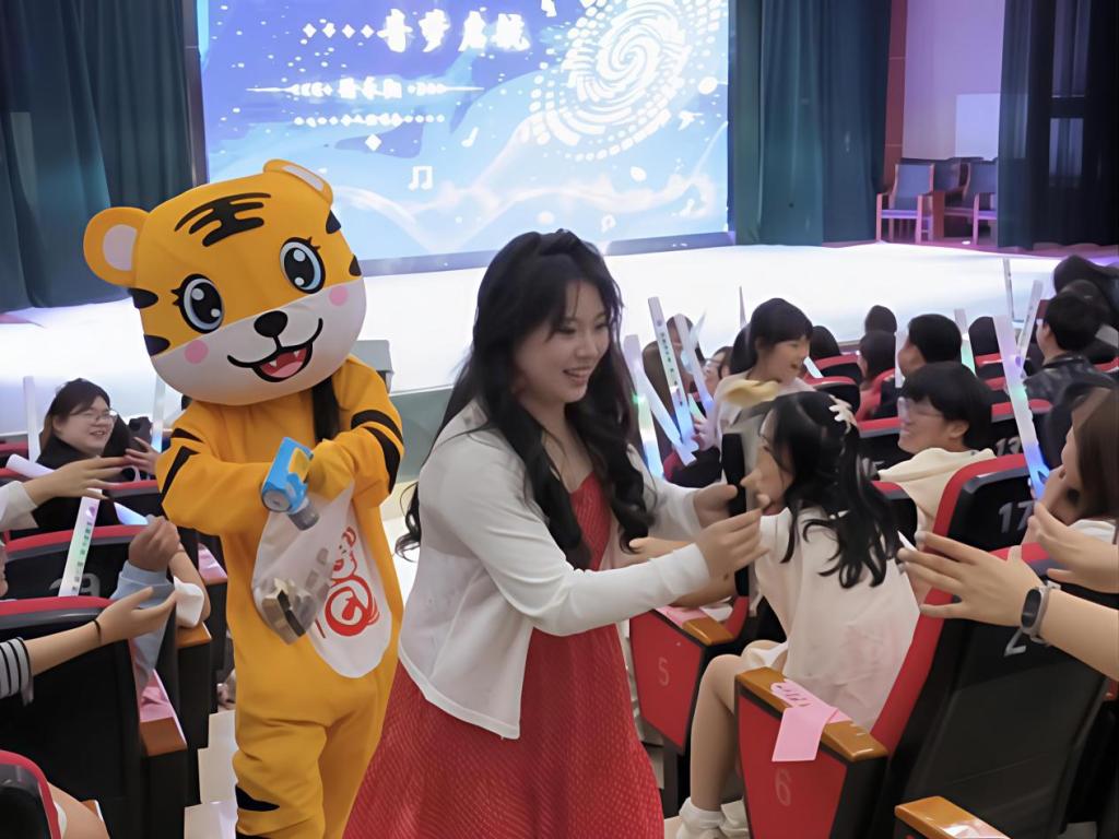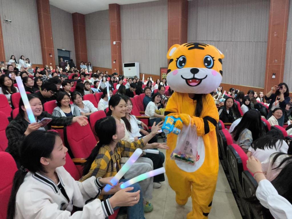 演唱间隙,身着龙、虎造型的吉祥物迈着轻快地步伐在观众席间穿梭,手中礼品袋里的小物件闪烁着微光。与此同时,演唱者走下舞台,与憨态可掬的吉祥物并肩而行,一同亲切地向观众握手。观众们挥舞着荧光棒,笑容灿烂,现场热烈欢快的温馨氛围扑面而来。