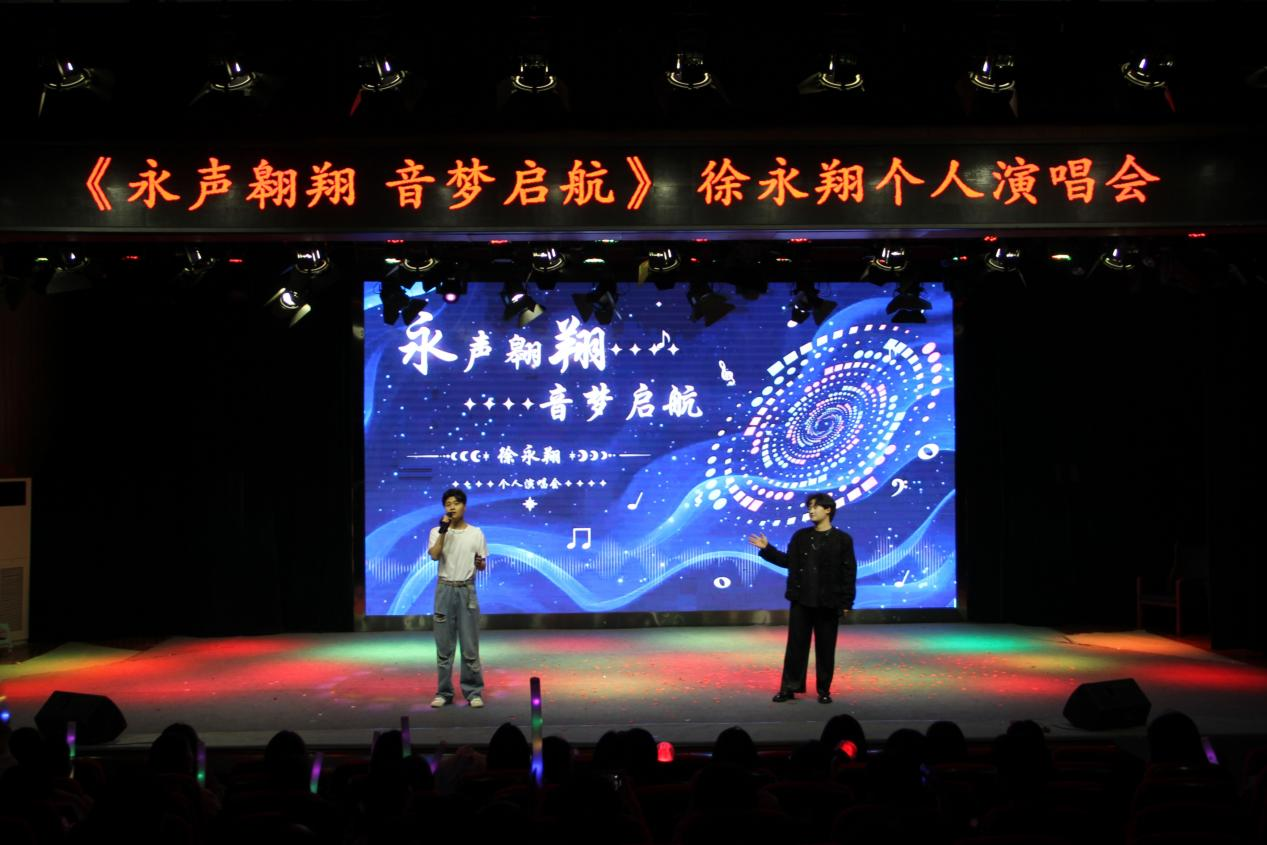 4月22日晚,由yl7703永利主办,音乐表演教研室、“画外音”辅导员工作室承办的“永”声翱“翔”,音梦启航——徐永翔个人演唱会在开元校区砺德厅成功举办。公司党总支书记王春生、经理高岐奎及公司师生欢聚一堂,共同享受这精彩的音乐盛宴。