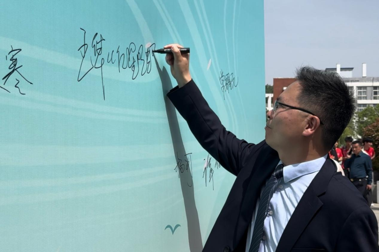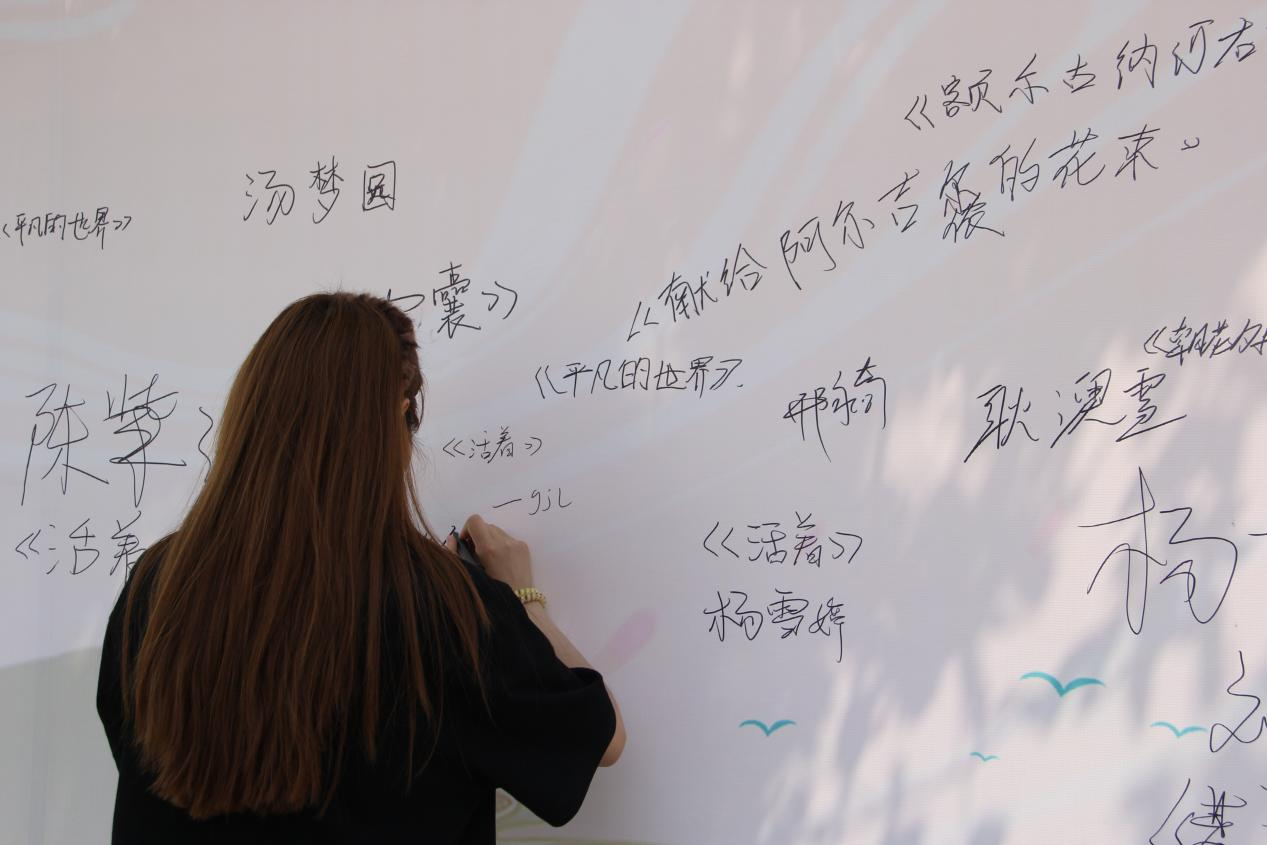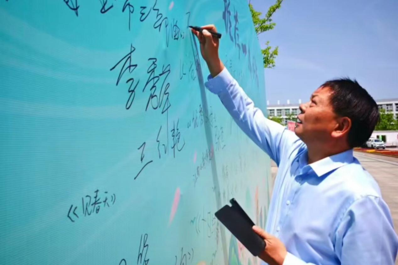 启动仪式后,董事长李清臣与师生们一同在“好书推荐墙”上签名,并推荐优秀书目。