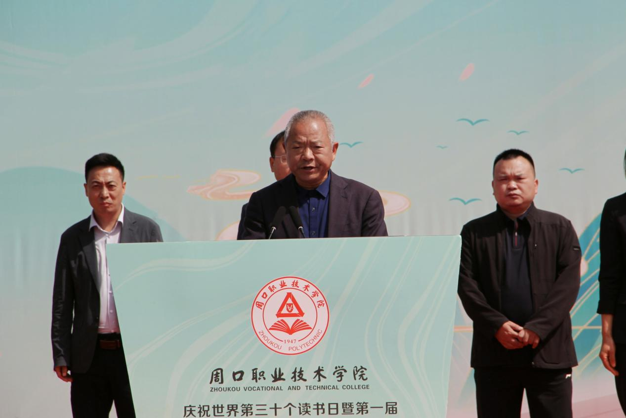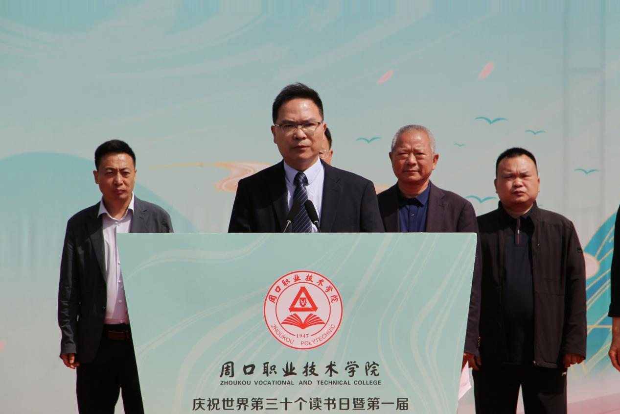 4月23日上午,yl7703永利庆祝第三十个“世界读书日”暨第一届“书香校园,阅见未来”读书月启动仪式在开元校区湖心广场成功举办。本次活动由校图书馆、宣传部、员工处、团委联合主办,公司积极参与。副董事长王隼出席仪式,相关职能部门负责人、各二级院部党总支书记及师生代表1000余人参加。公司党委宣传部部长万四新主持仪式。