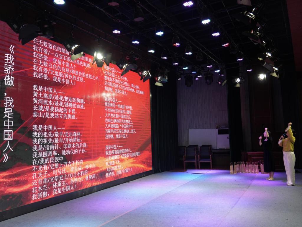 张慧香、王丽娅带领同学们朗诵诗歌《我骄傲,我是中国人》。