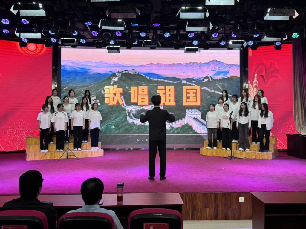 24级学前教育四班与早期教育一班分别带来合唱曲目《灯火里的中国》、《歌唱祖国》,他们用嘹亮的歌声抒发对祖国的深情热爱与美好祝福。