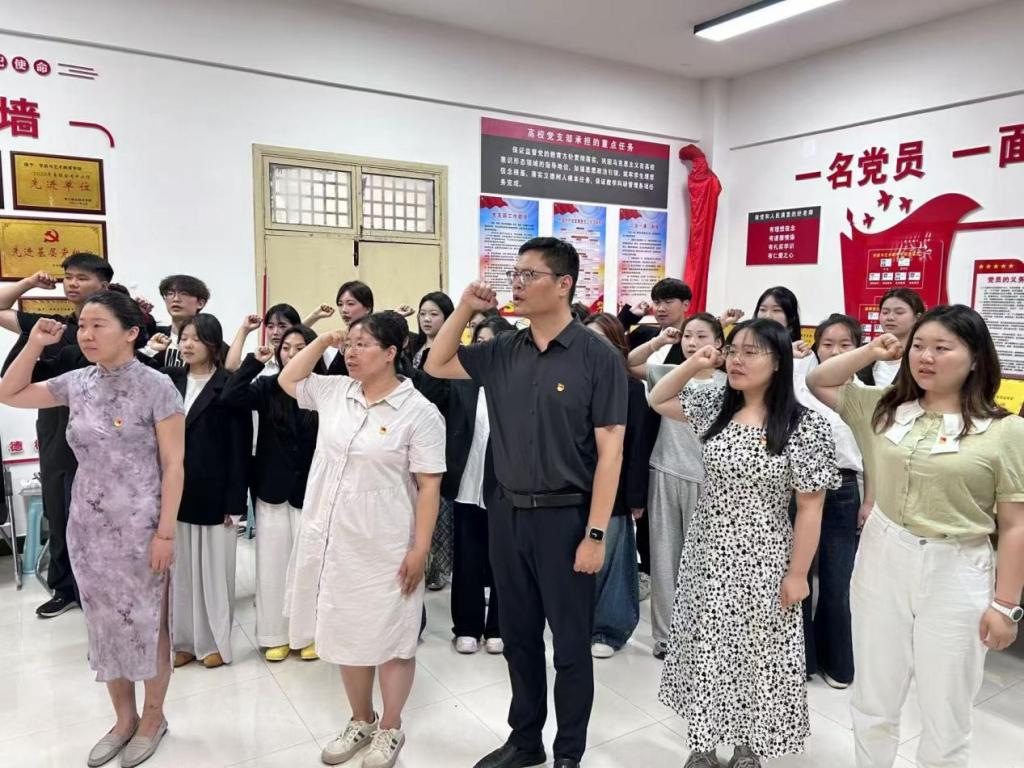 决议宣布后,全体党员在杨晨同志的带领下宣读入党誓词。