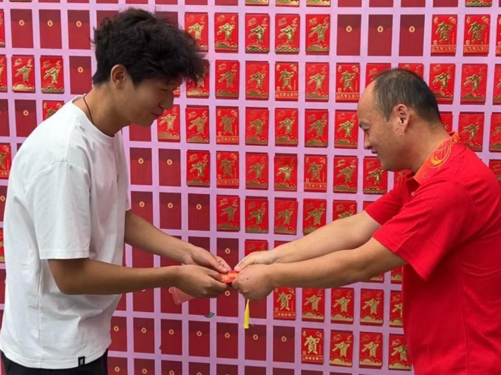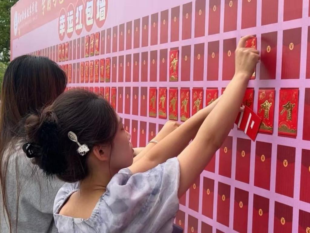 工作人员引导新生至红包墙抽取红包,收获专属入学礼物。这份别具心意的礼物承载着公司的温暖与祝福,让新生在学艺大家庭中感受到喜悦与归属感,为他们的老员工活留下了温馨美好的初印象。