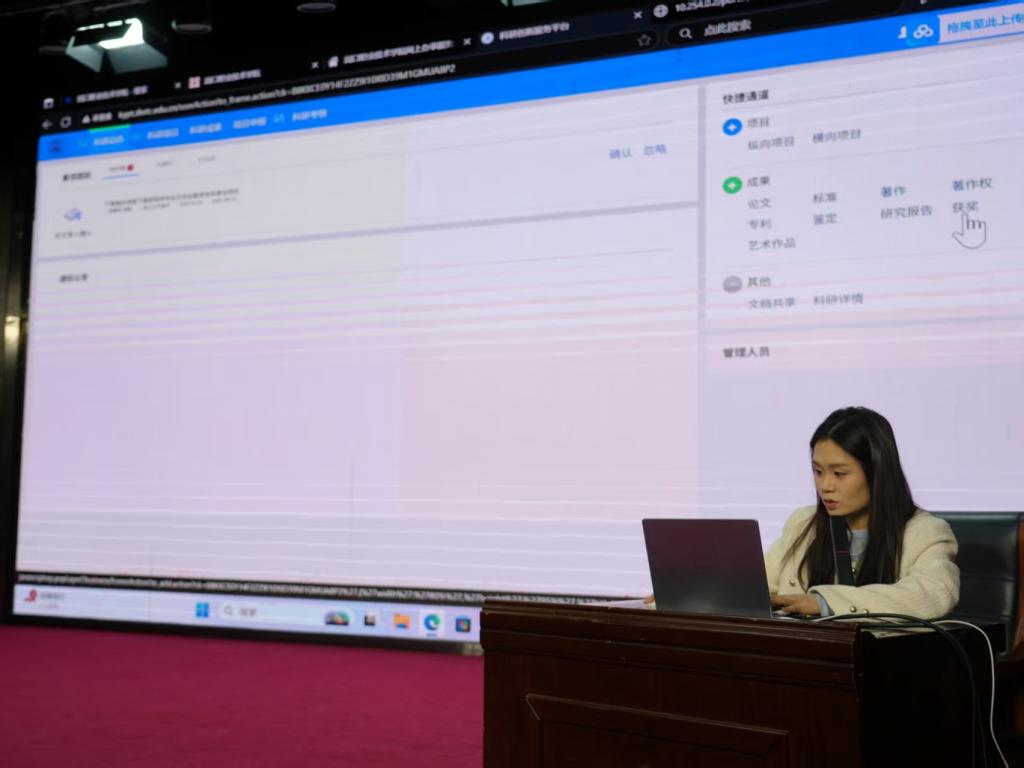 副经理耿润详细讲解科研系统平台的成果分类、项目申报等事宜,指出该平台有效提升了工作效率。